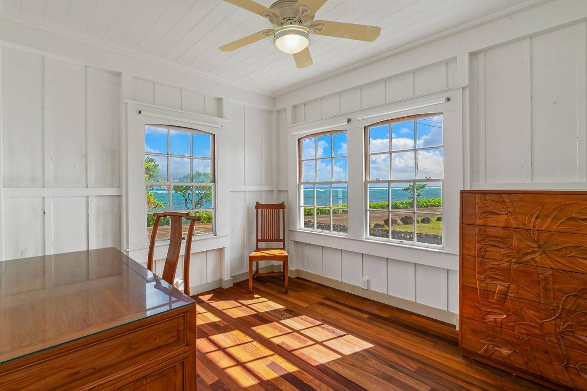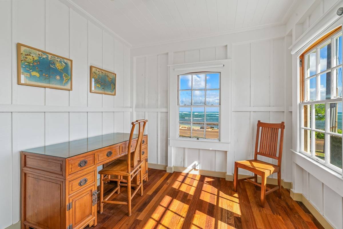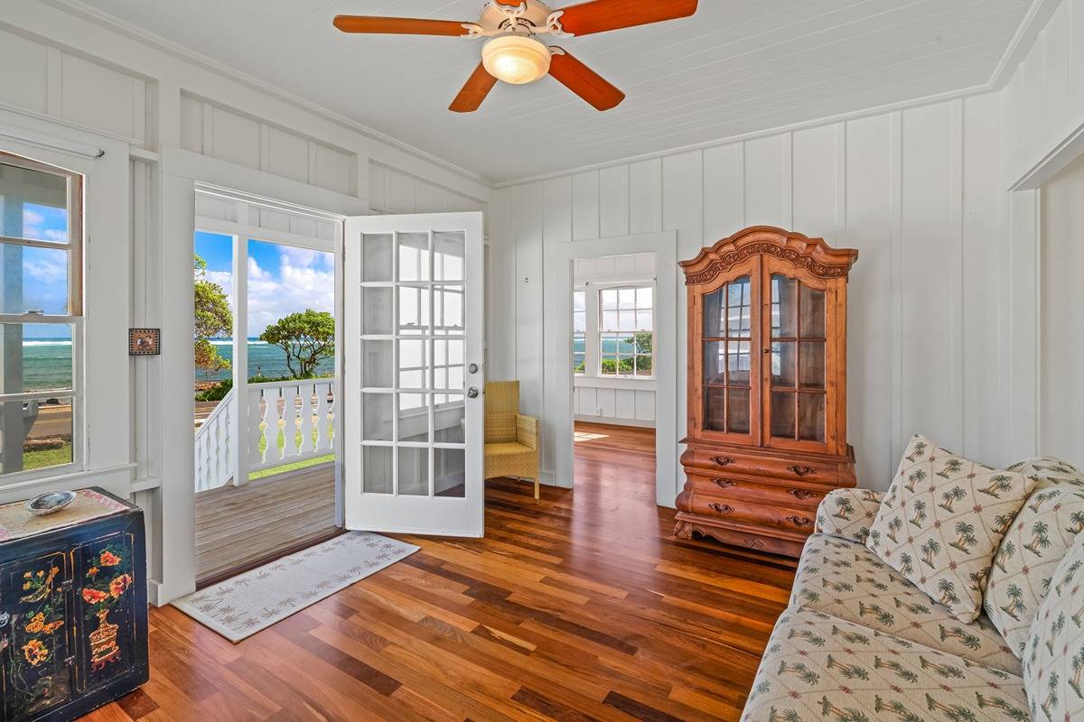 This charming and well-maintained 3-bedroom, 1-bath home overlooks the Kapaa multi-use path to the blue ocean beyond. Gentle trade winds cool the home adding to the ambiance of the sights & sounds of the sea. A perfect setting for a simple life on Kauai The property includes a free-standing garage with an attached office space and bathroom - - an ideal set up for a remote work space. County zoning approval for an ADU (Additional Dwelling Unit) which allows for the construction of a second home. Ideal central Kauai location with access to surfing, diving, fishing, beach-combing, restaurants, shopping and the 7.2 mile coastal multi-use path known as Ke Ala Hele Makalae right out the door. Other notable features include: