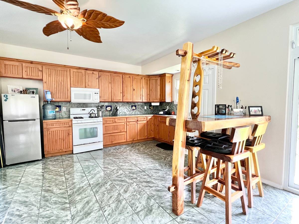 Custom built with quality in mind, the framing and siding are Canadian Red Cedar & only stainless steel nails were used. The concrete foundation was reinforced with 26" 3200-lb. pre-stress steel and the 14 gauge steel roof was installed with plywood sheeting, felt paper & battens. The hurricane resistant windows cost $5,500 EACH, and the doors are an oriel-vaulted aluminum frame with armor clad vinyl. Tile flooring throughout the house for ease of maintenance and hard wood cabinets in the kitchen. The 2000 watt solar system comes with 2 generators and storage batteries. There is a 20' x 24' greenhouse, 11' x 11' solar and generator storage building, and plenty of fresh water from your 10,000 Gallon water catchment.
