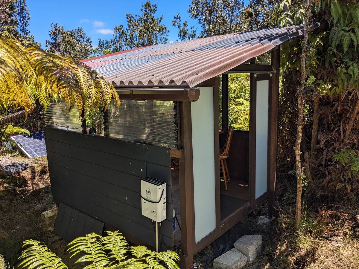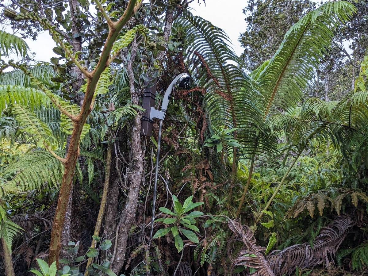 A hot shower under the moon and hapuu ferns awaits after a day's work. A