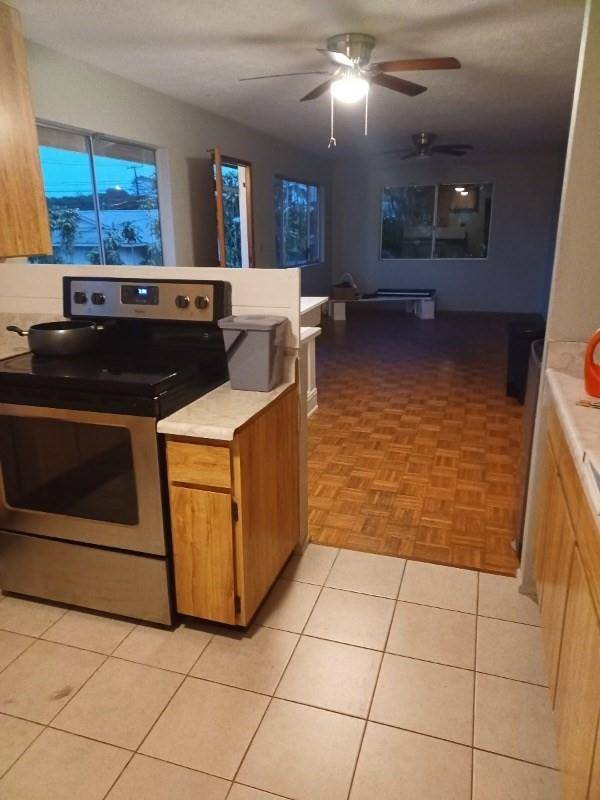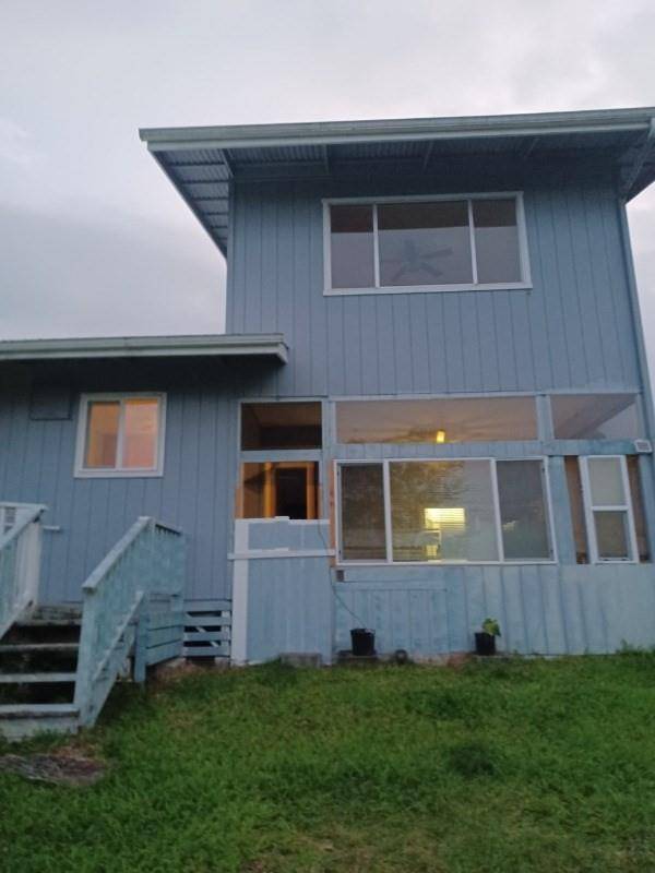 Aloha! Don't miss out on this opportunity to add your own touches to this spacious 2 bedroom 1 bath gem with a beautiful floor plan! Located on an expansive lush green 20,880 sq. foot lot that hosts a number of large mature fruit trees! This home also offers a very nice large upstairs sun-soaked bonus room surrounded by large glass windows, which offers breathtaking views of both the ocean and mountains! It is centrally located, close to the University of Hilo Hawaii, Hilo Medical Center, Malls and shopping centers. The carport is enclosed and could easily be an added living space with a few finishing touches. It also has a bonus quarter bath in the converted enclosed carport space with sink and laundry hook-up. This home has a massive amount of potential for you to easily make it your dream space! Ideal spot for professionals who want to live near town or a great vacation home. Great space on the upper level.