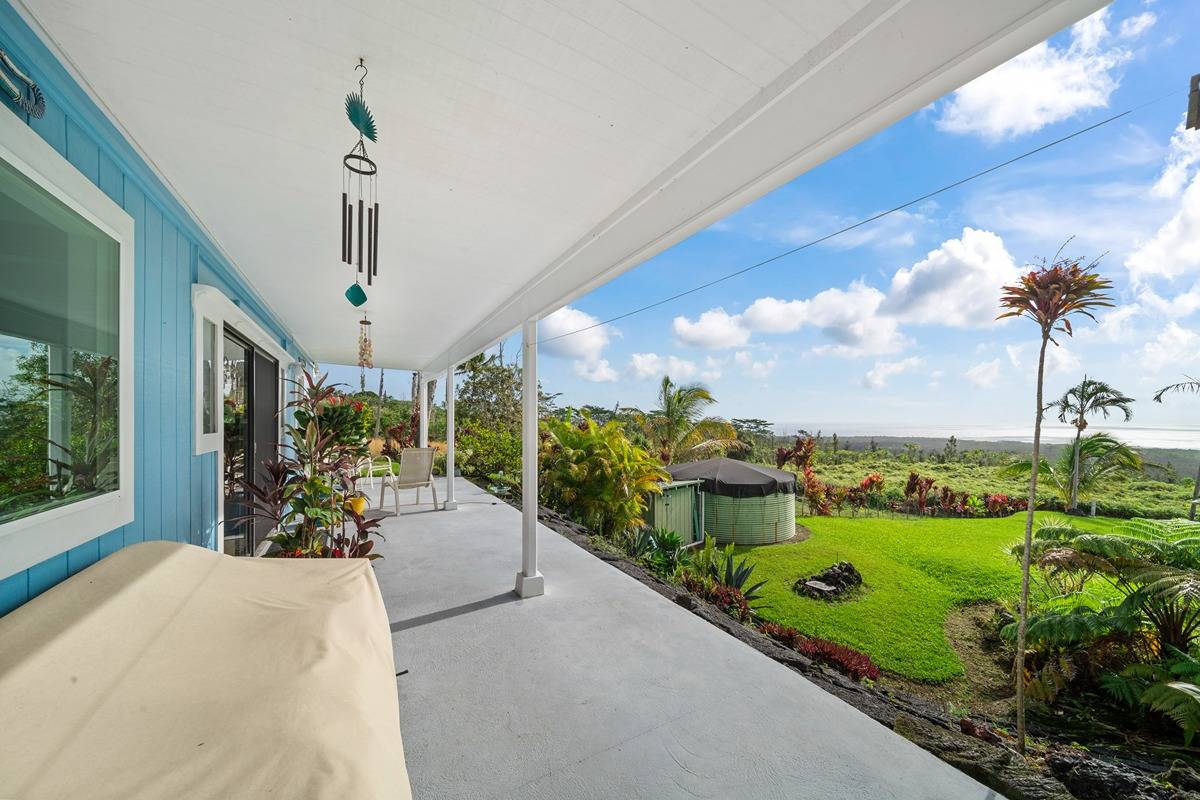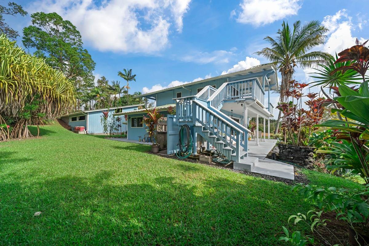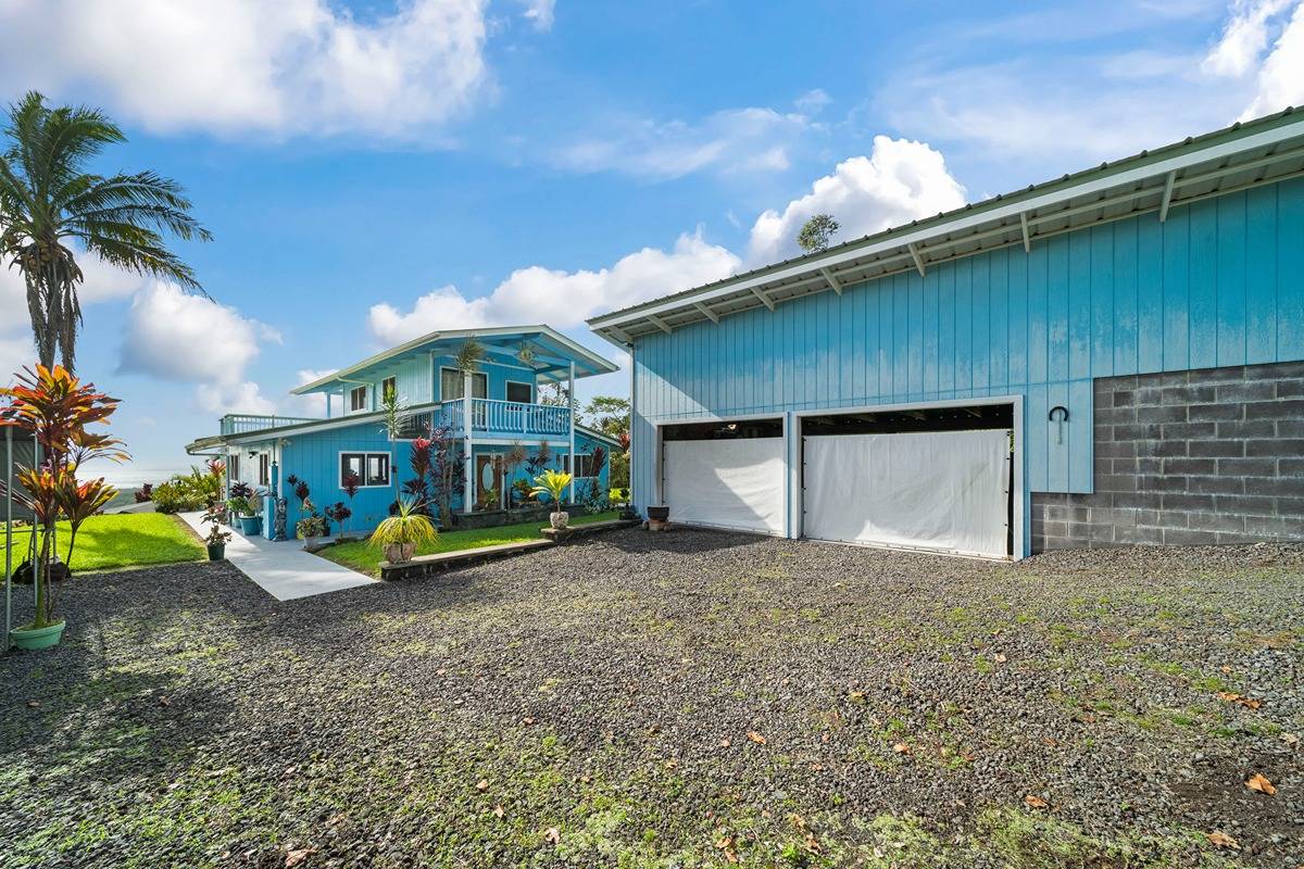 Beautiful Turnkey home tucked away in Leilani Estates just bring your toothbrush !! Offers so much to enjoy and explore! This is a 3 bed 2 bathroom 1,350sqft home ,with a rustic farm style theme.Recently remodeled featuring 2 ground level bedrooms With the primary suite on the top floor. This unique home features absolutely stunning ocean views from all areas. Sit on your spacious Lani and enjoy your morning coffee or evening cocktail !! This home also has a detached 22X44 shop for all storage/Gear head needs! There are mature well producing avocado trees as well as coconut trees, and beautiful decorative palms lining the drive way .This home also has an amazing lava tube off to the side of the property for curious adventures.This home is truly a must see!!!