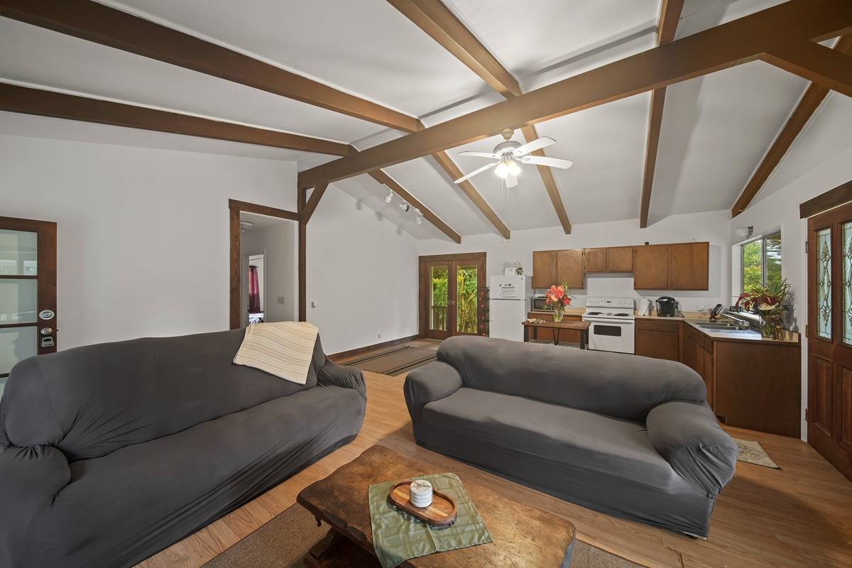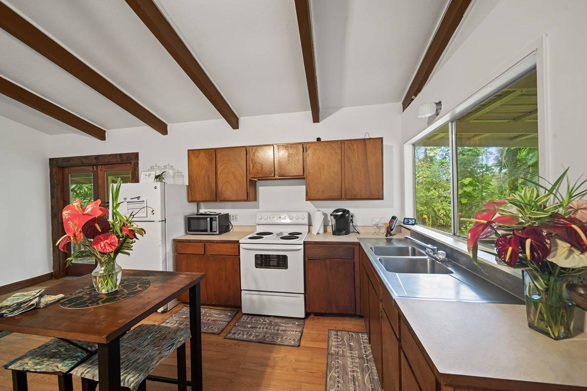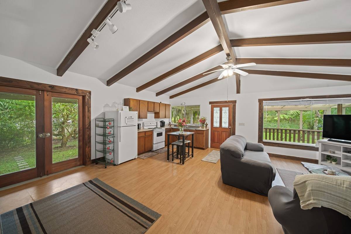 A spectacular Gem Tucked away in Beautiful Nanawale Estates! This Beautiful 2 bed 2 bathroom home Offers so many options to make it your own! From the large Vaulted ceilings that gives great air flow throughout the home ,to the spacious Lani which is perfect for enjoy your morning cup of coffee . With newly remodeled bathrooms this home features an open floor plan and spacious bedrooms.Sitting on a corner this lot is one of the largest in the neighborhood at approximately 16,311 Sqft. Also offering both catchment and county water so you can choose your water source.There is a beautiful lily pond surrounded by amazing well producing fruit trees ,from Ulu to Lemon, Tangerine,Coconut,Cashew,Mango, Bilimbi!! Just 5 mins from Pahoa Town which offers authentic living and many needed amenities.Just over 30 mins from Hilo Town and beautiful beaches .This home is a great home to build a beautiful future and enjoy a peaceful life.