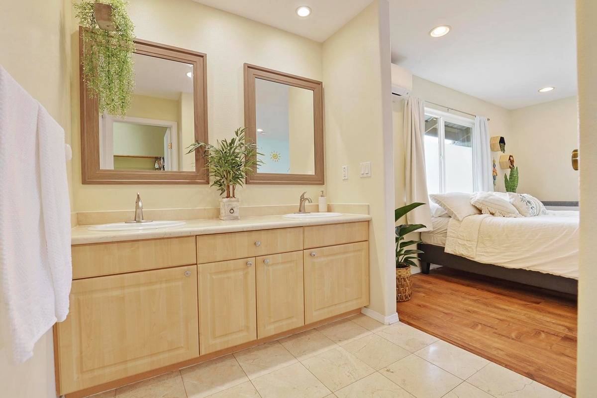 Settle into this serene environment with an inviting open-concept floor plan and air-conditioned interiors. Recently updated with new luxury vinyl flooring in living areas and bedrooms, as well as elegantly tiled finishes in the bathrooms, the home provides a fresh and modern feel. The kitchen features modern appliances, including a stainless-steel refrigerator and electric range, along with a convenient breakfast bar.