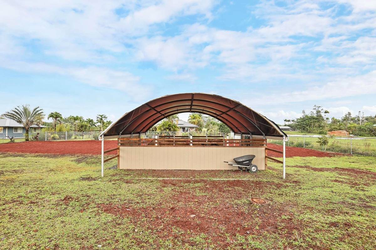At the rear half-acre, a 24x25 open-air storage/barn awaits, surrounded by cross fencing and accessible through a separate drive-through gated entry. This versatile space offers opportunities to accommodate animals or construct an accessory dwelling unit. Utilize the cleared area for creating a rental property or as extra space for hosting visiting friends and family.