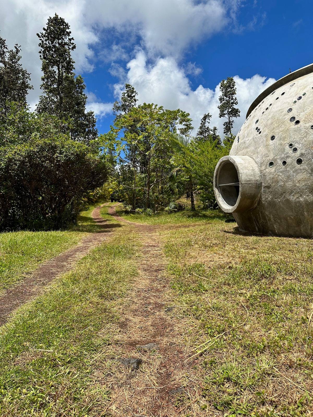 Homesteading Dream in Hawaiian Acres, a gardener's paradise in the lush greenbelt of the Big Island. This property is situated at around 1100 ft in altitude. Popular and convenient location in a beautiful ohia forest between Volcano National Park, Pahoa, and Hilo. These two (2) adjoining three acre parcels are to be sold together, to make a total of six acres. About half is developed, with 3 acres for you to leave or develop to your liking. Gated palm lined driveway leads first to the aircrete dome, perfect for a yoga studio, meditation or guest room. Dome was designed with glass bottles in the walls and a hobbit entryway, creating an other wordly atmosphere. So much love and work put into this area, it's a standout feature of this property.This part of the acreage was planted 5 years ago with lime, star apple, rollinia, jackfruit and more. It also includes a greenhouse, lava formations and peek-a-boo ocean view. Main house sits further into the property, well off the road. It is cedar sided and smartly sits off the ground as is customary here to allow for airflow. Well-built and cared for, this house is durable and charming. Off-grid with a solar setup that runs the house, your energy bills will be nonexistent. Solar can be upgraded but is ample power for one person or a couple. One bedroom/ one bathroom cabin has airy vaulted ceilings throughout and an open floor plan. Everything in this cabin has been done with attention to longevity and withstanding the rainforests moist air. Custom cedar paneling on the inside walls, with beautiful trim around the doors and windows; this carries through to the bedroom and bath which are down the hall. Bedroom has vaulted ceilings, bathroom has tile floor and shower.mSo much work has been done on this land, with plenty of room for still for your own vision.