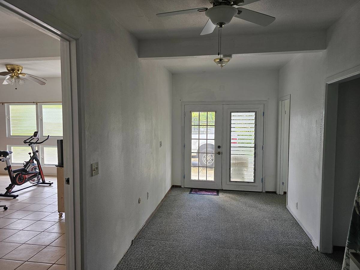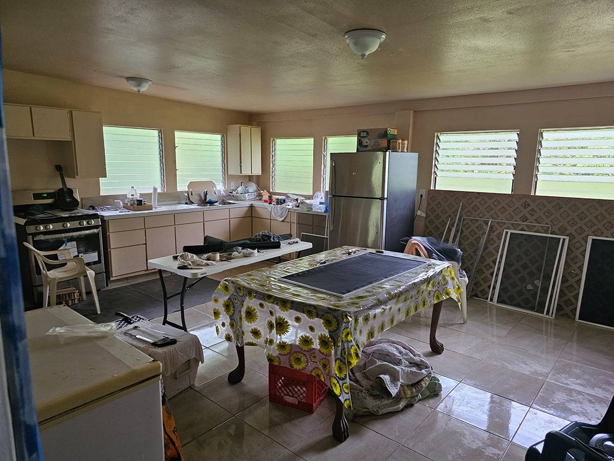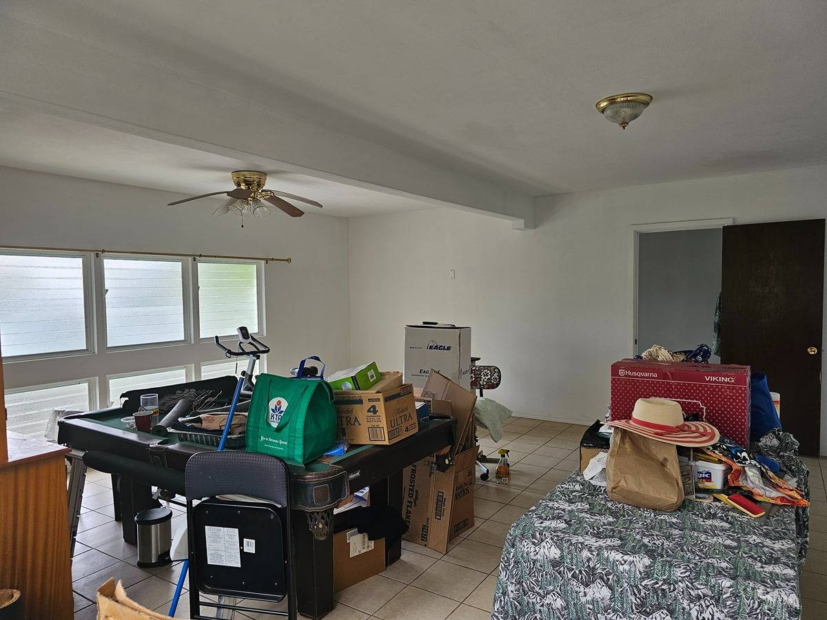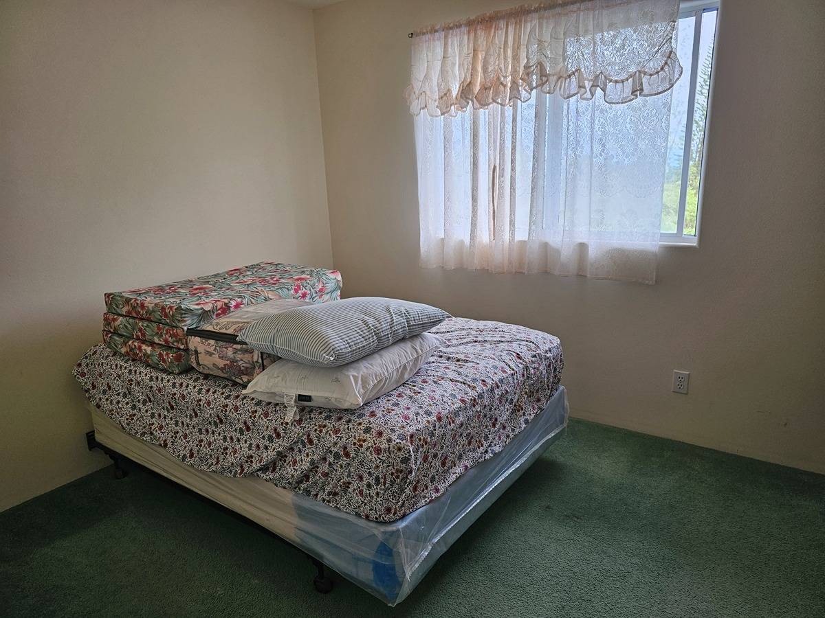 Large and spacious 2- story home in Hawaiian Acres off of Uhini Ana (Road 1) situated on a 1.87 acre lot. Upstairs level has 3 bedrooms and 1.5 baths with vaulted ceilings in the living room and kitchen area. There's views of the property from front and back lanais with the best vantage point. Downstairs is a large room perfect for entertaining or converting into another family/den room with a full-bath and three smaller-sized rooms across a hallway that has outside access. Lower level also has a large food prep/wet bar area that use to be a lanai that was enclosed to have additional storage and workspace.