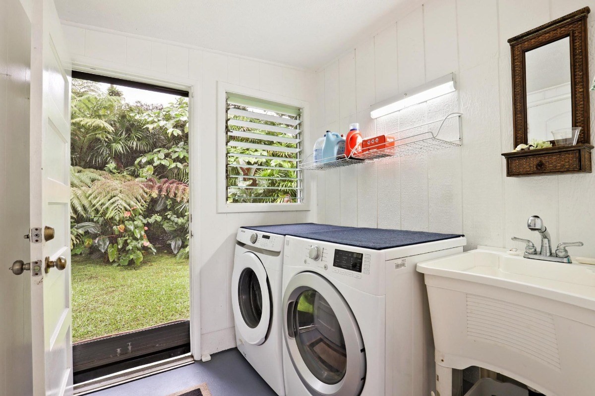 There is a downstairs laundry area that also has a toilet and shower. The fully owned 14 panel solar (photovoltaic) system is a plus for hot water and keeping the electric bills low, in addition to on site HEPCO backup electric service.