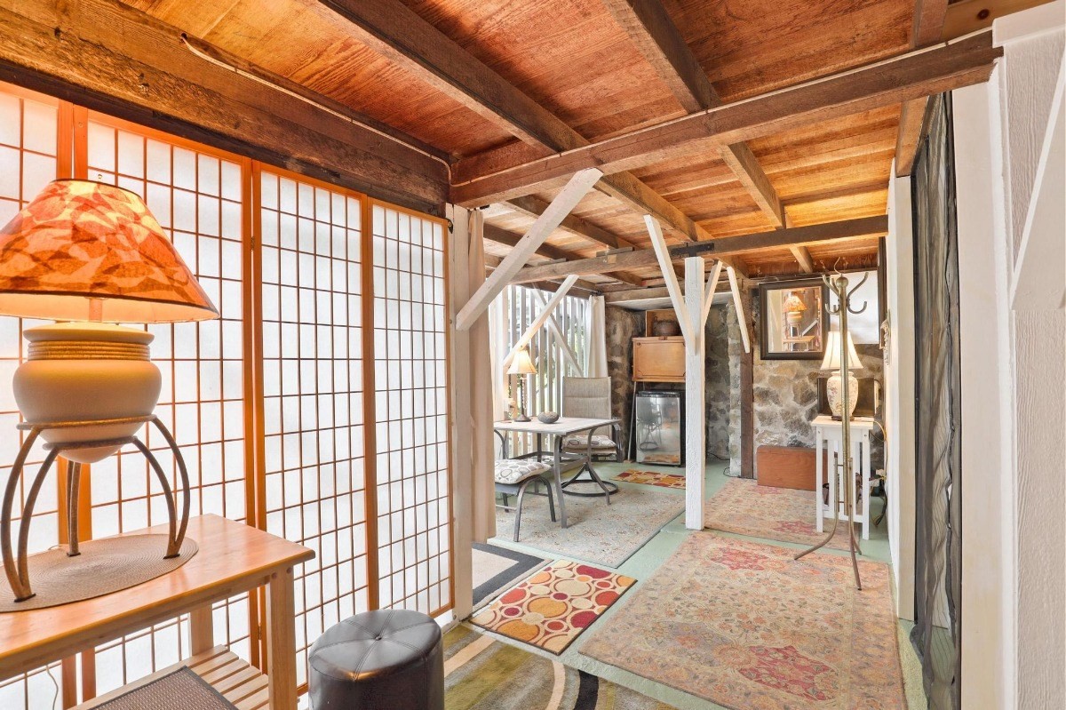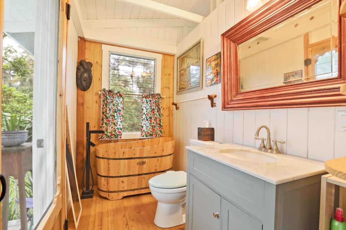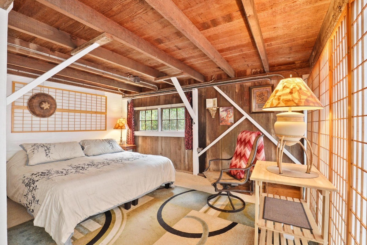 The main house has a master bedroom suite and private bathroom, while the second bedroom features a sitting area and separate bath. The post & pier construction allows for 1 covered vehicle space, a guest room, and work shop under the house, as well as plenty of storage.