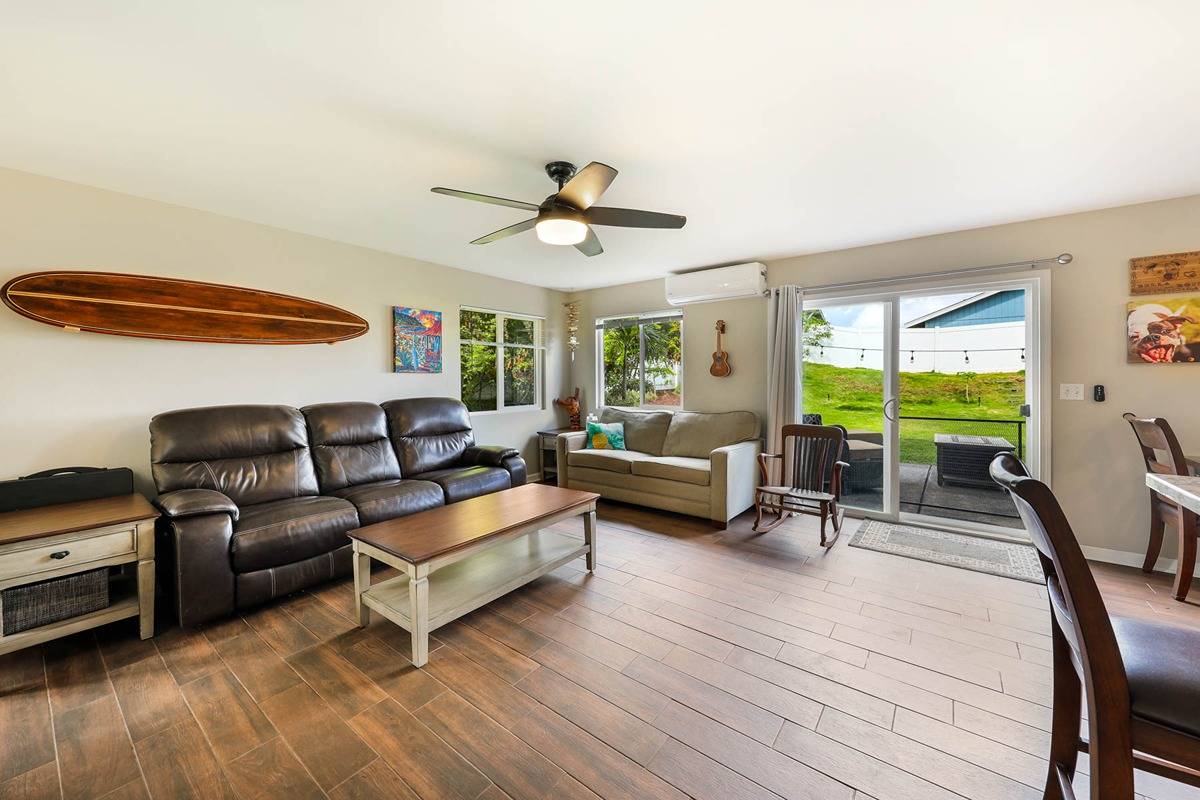 Welcome to your dream home in the heart of Kauai! This meticulously renovated residence offers the perfect blend of modern comfort and tropical paradise living. From the moment you step through the front door, you'll be greeted with an airy and spacious atmosphere that invites relaxation. This home has split air conditioning, ensuring your comfort. The heart of the home is the kitchen with newer appliances and ample counter space for culinary creations. Step outside to discover your own private oasis – a fenced backyard that provides both privacy and security. Enjoy the island breeze and entertain guests on your lanai, complete with a charming tiki bar that sets the stage for unforgettable gatherings under the stars. Whether you're unwinding in the serenity of your beautifully landscaped backyard or hosting friends for a tropical soirée, this home offers the perfect balance of indoor and outdoor living.