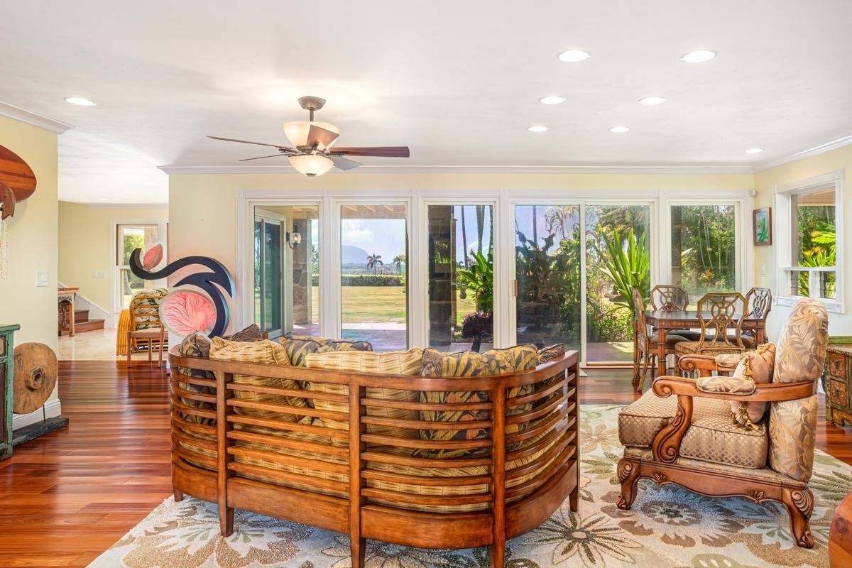 Experience breathtaking panoramic views of the ocean, Bali Hai, and majestic mountains from this spacious and modern family residence nestled on 8 sprawling acres. Boasting 4 bedrooms and 4.5 baths with over 5000 sqft of interior living space, this home showcases a wealth of premium features that are apparent the moment you pass through the gated entry and drive up to the porte cochere.