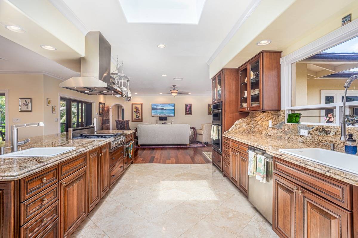 Elevate your entertainment with a large open kitchen and living space with extra-large sliding glass pocket doors that open to the lanai, highlighting a wonderful indoor/outdoor experience. Large pool surrounded by Oregon granite slabs, basalt columns from the Big Island, and a 20 person spa perfectly situated to capture the serenity of the Bali Hai sunsets. Benefit from a large energy-efficient solar array that produces over 60KwH on a sunny day.