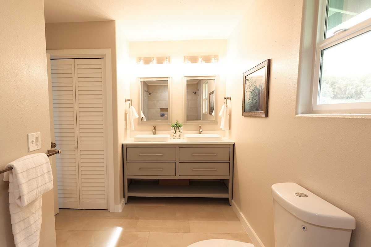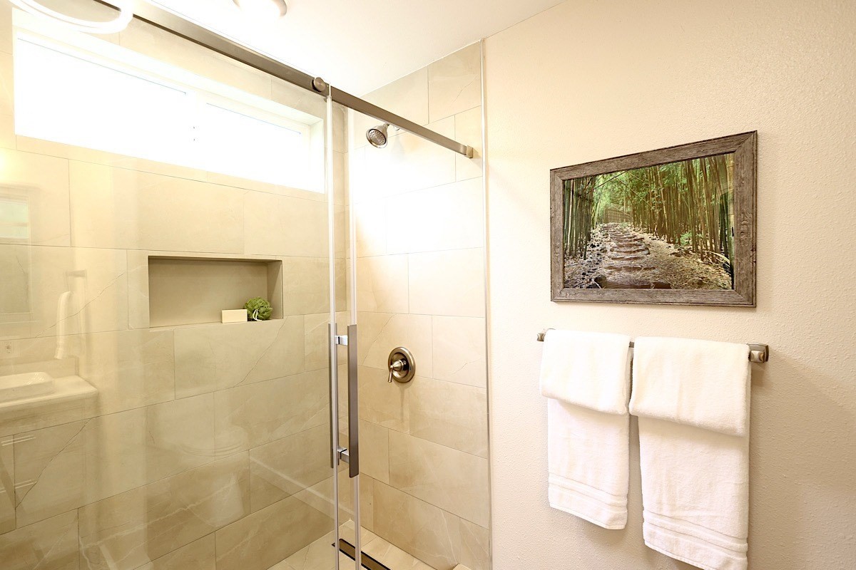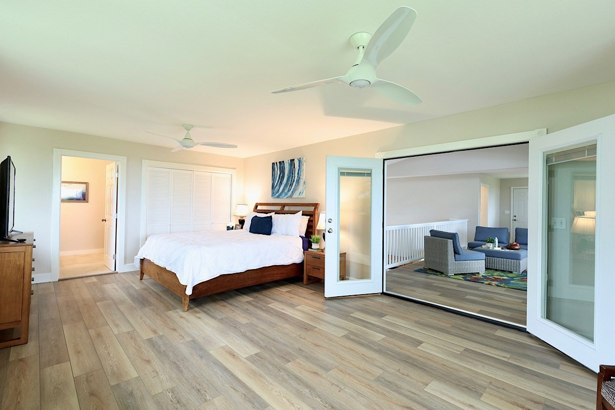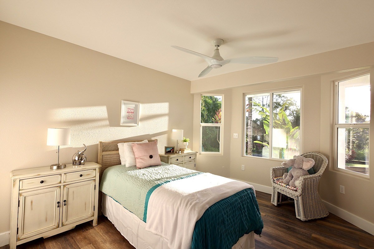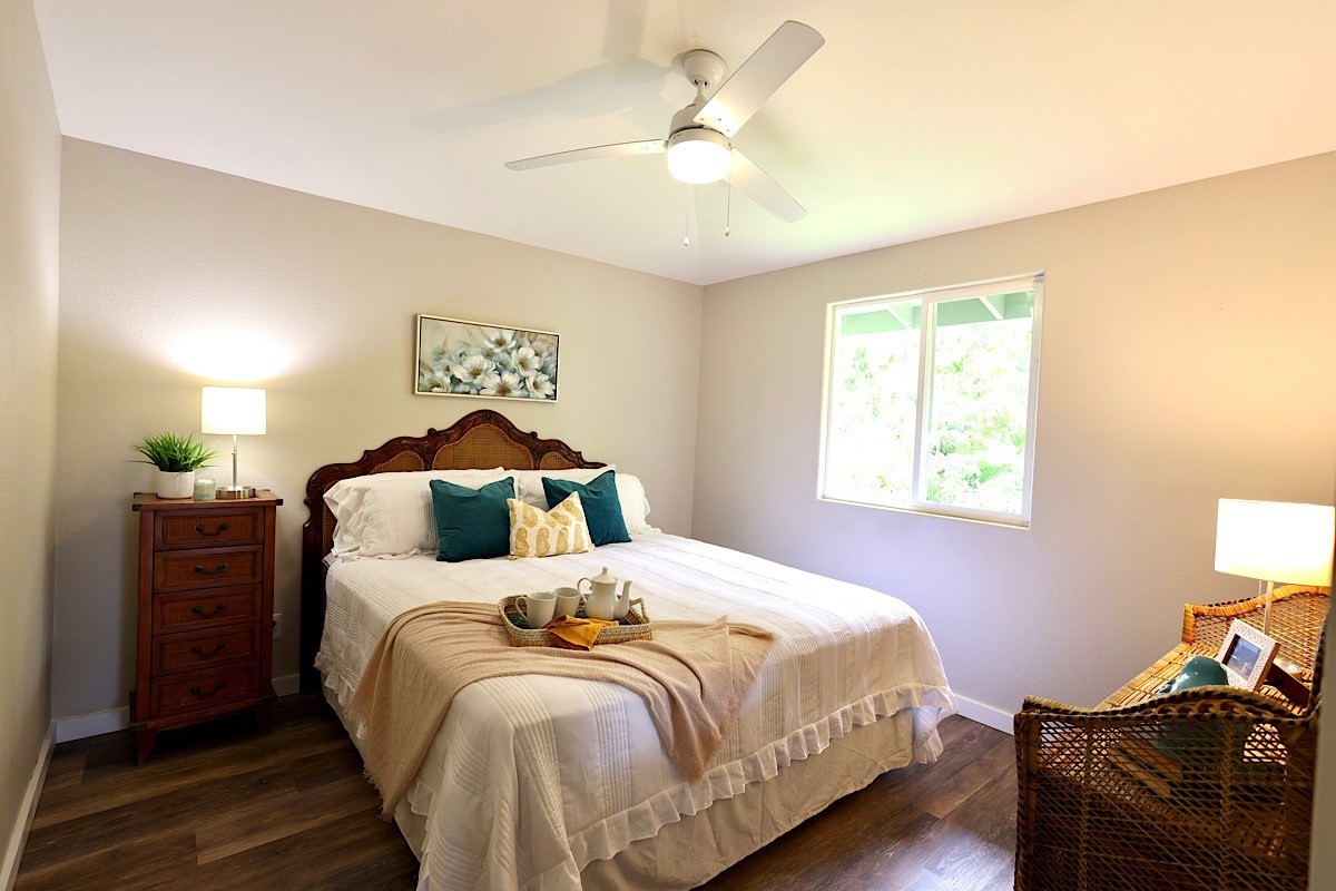 Stately styling in popular Hakalau Plantation! Just minutes from Hakalau Beach Park, this home has been lovingly redesigned to make marvelous use of the generous spaces. With over 3000 sf of living area including an "Ohana" unit located over the garage, the property is over 1/3 acre and zoned RS 7.5. The home sits back from the road with lawn space preserved for your future pool. A wide lower lanai greets you as you climb the stately rock steps and enter to ceilings that soar from 9 ft to two stories. A newly configured kitchen is open concept with an awesome breakfast bar, great built-ins, and generous work-surfaces. With high end touches, it's truly large enough for several chefs to enjoy! Part of a two story great room with beautiful stairs leading to the upper floor, this open concept space is always party ready! Also on this level is a bedroom with a gorgeous ensuite bath and nice views. The bluetooth speakers and mood lighting in this space are but a few of the special touches. A second makai (ocean) side bedroom offers a flexible space for your office, craft room or ?? An easy climb up the wide staircase leads to a central area overlooking the great room and opening onto a wide ocean view lanai. An office nook is tucked to one side. This multi-purpose space is a great yoga spot or entertainment area. A large primary bedroom spans one end of the home with another bed and bath also in this area. This home truly has space for all and when it comes to accessory spaces, there no compromise in attached the guest space which can be accessed thru the garage or across a "bridge" from the upper level. With it's own breezy lanai, this private space features a bedroom and kitchenette. After a long day at the beach, this home is a true retreat with lots of space, all utilities and finishes you'll enjoy for years to come!