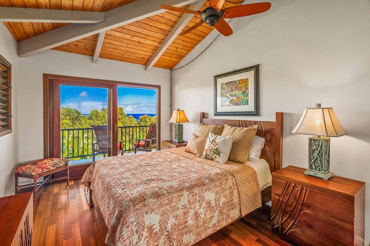 Intelligent design distinguishes this 3 bedroom 2 ½ bath dwelling. The expansive tempered windows embrace the vista. Redwood louvers welcome circulating ocean breezes. Ample decks with copper railings expand the living area. Jatoba flooring, stained glass windows, Italian marble, a spa tub and exterior copper gutters add to the overall feeling of understated elegance. The kitchen boasts a Sub-zero fridge, a gas cooktop and granite counter tops. There is a mini-split system, washer and dryer and newer carpeting.