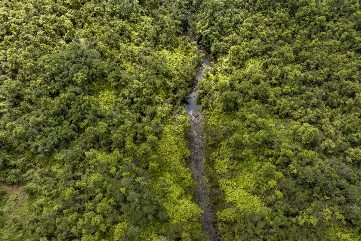 the natural/native forest will remain as a companion to this property to maintain it's privacy and seclusion. This off-grid cabin was built with BLNR and County approval in the 90's and features a minimal capacity gravity fed water catchment system and no power or hot water currently. The property is rectangular in shape and borders the year round Maili stream and contains other seasonal streams between its borders. Currently there is no maintained trail access to swimming holes and waterfalls.