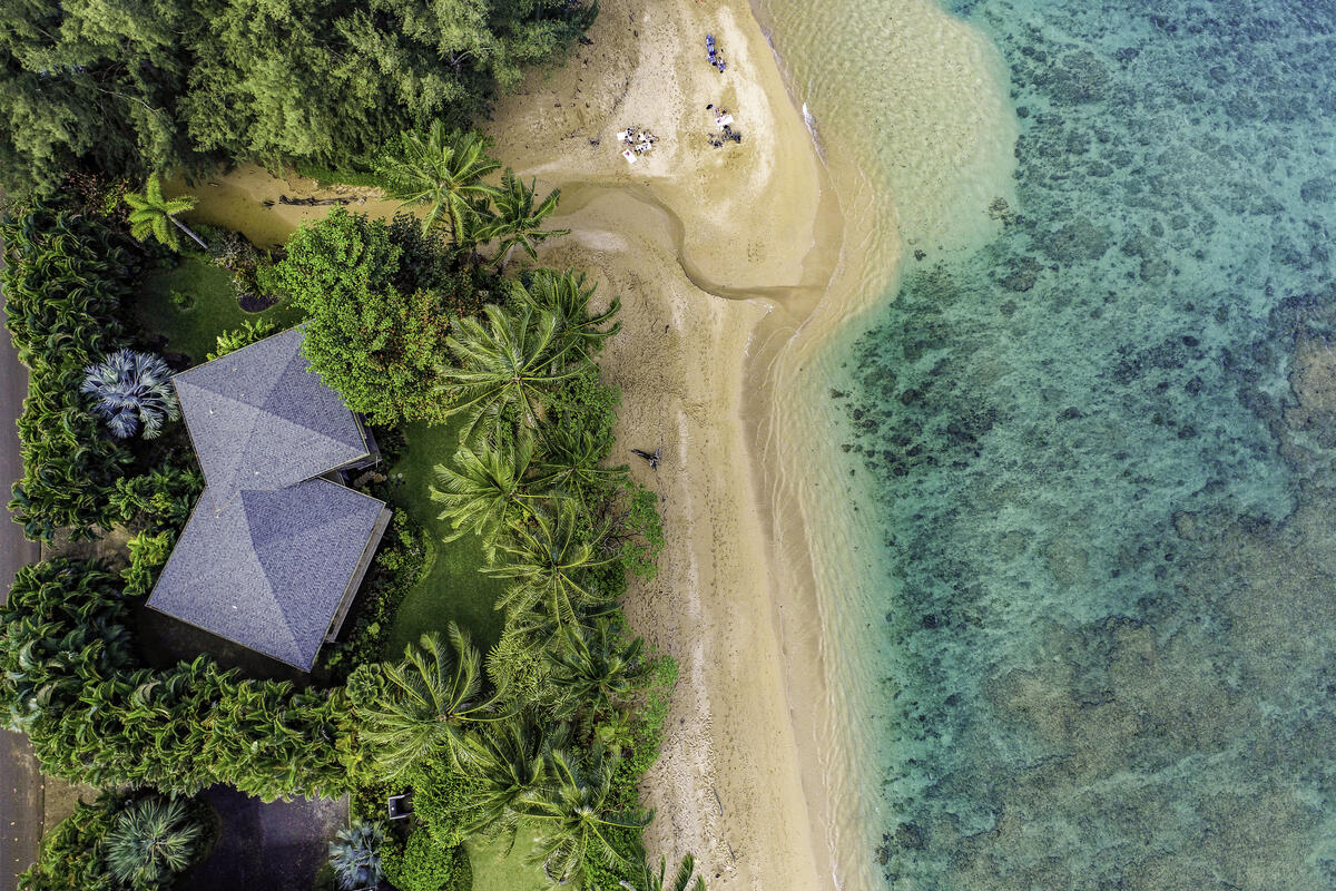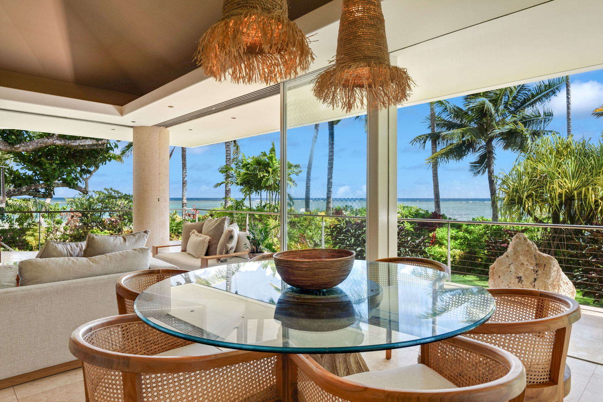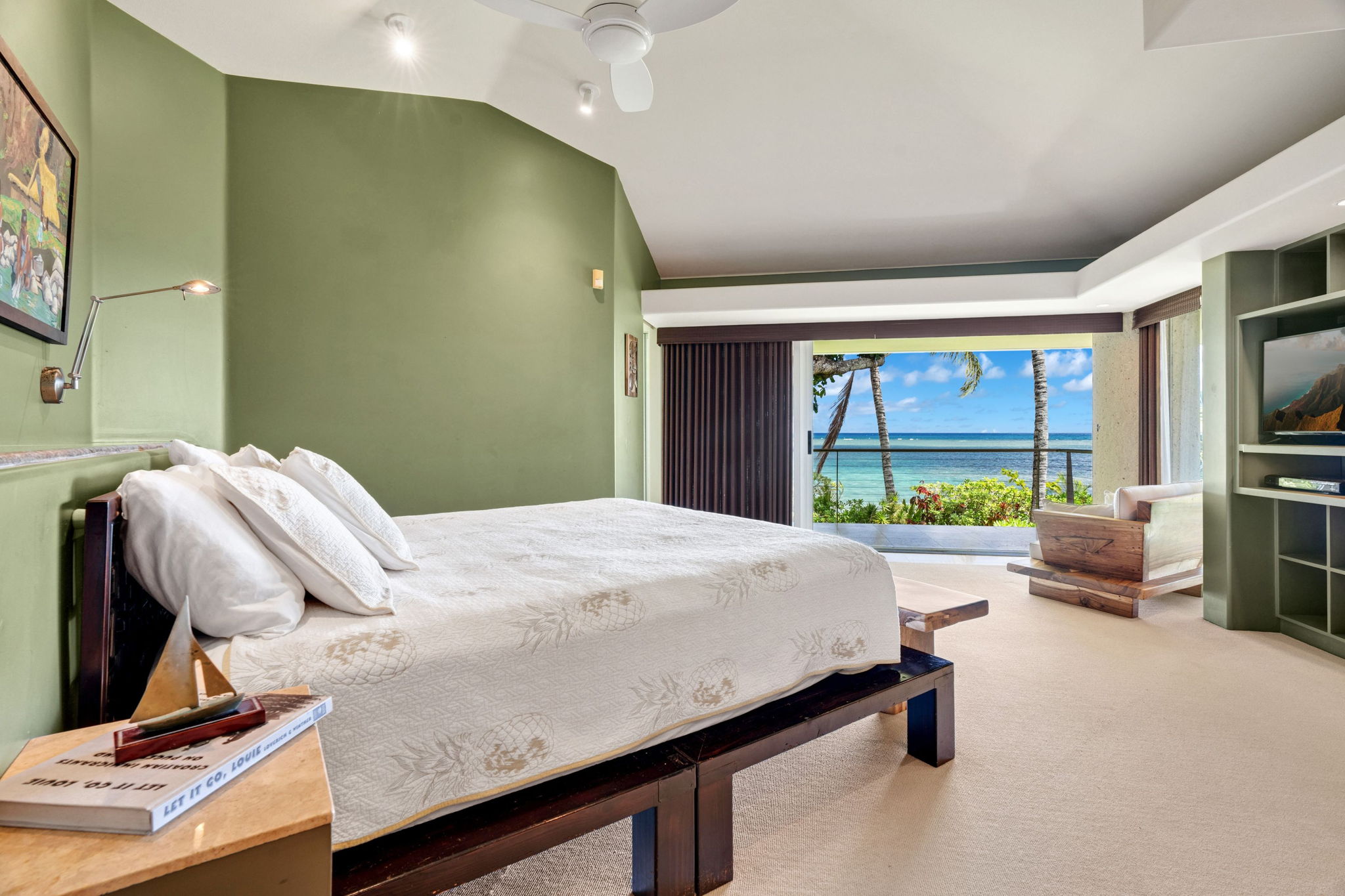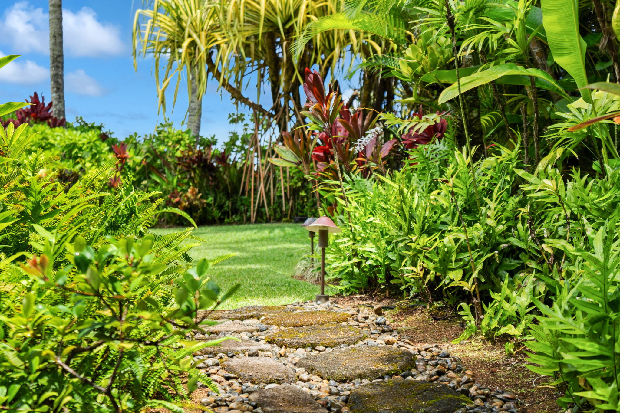 Situated on ½ acre of coveted oceanfront land, this contemporary estate designed by architect Norman Lacayo offers both private refuge and a phenomenal gathering place. With ~150’ feet of beach frontage, its envious location is steps from Anini beach and boasts 180° views of the ocean from the expansive decks. From the lush and tropical garden-like yard to the sun-soaked decks above, this is an oceanfront estate designed for exquisite comfort and impressive entertaining. The spacious and open floor plan with 9 ft.-tall glass pocket doors create a seamless transition between interior & exterior living areas welcoming the natural breezes off of the warm Pacific ocean into the home. Each bedroom offers ocean-views and private lanais, a perfect place to enjoy a good book or a cocktail. If income production is desired when you peel yourself away from heaven on earth, the home does have the coveted (TVR) vacation rental license.