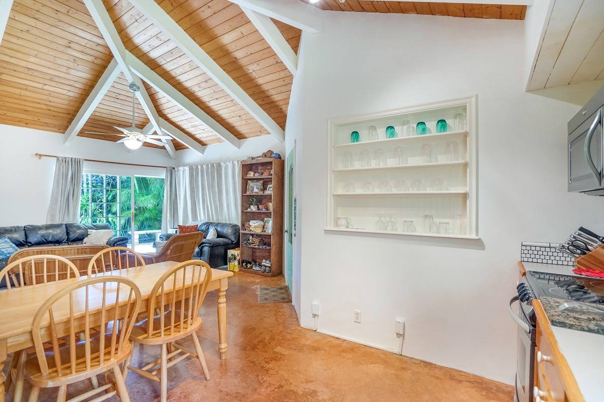 Unit #2 is a 2 bedroom with1 bath, beautiful vaulted ceilings, polished cement floors, and spacious kitchen. Complete with Private lanai space and its own laundry area.
