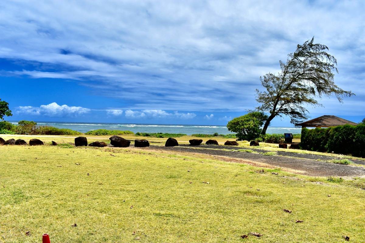 Take in the Vast Pacific Ocean view with a large level lawn for any type of gathering from weddings to drum circles.