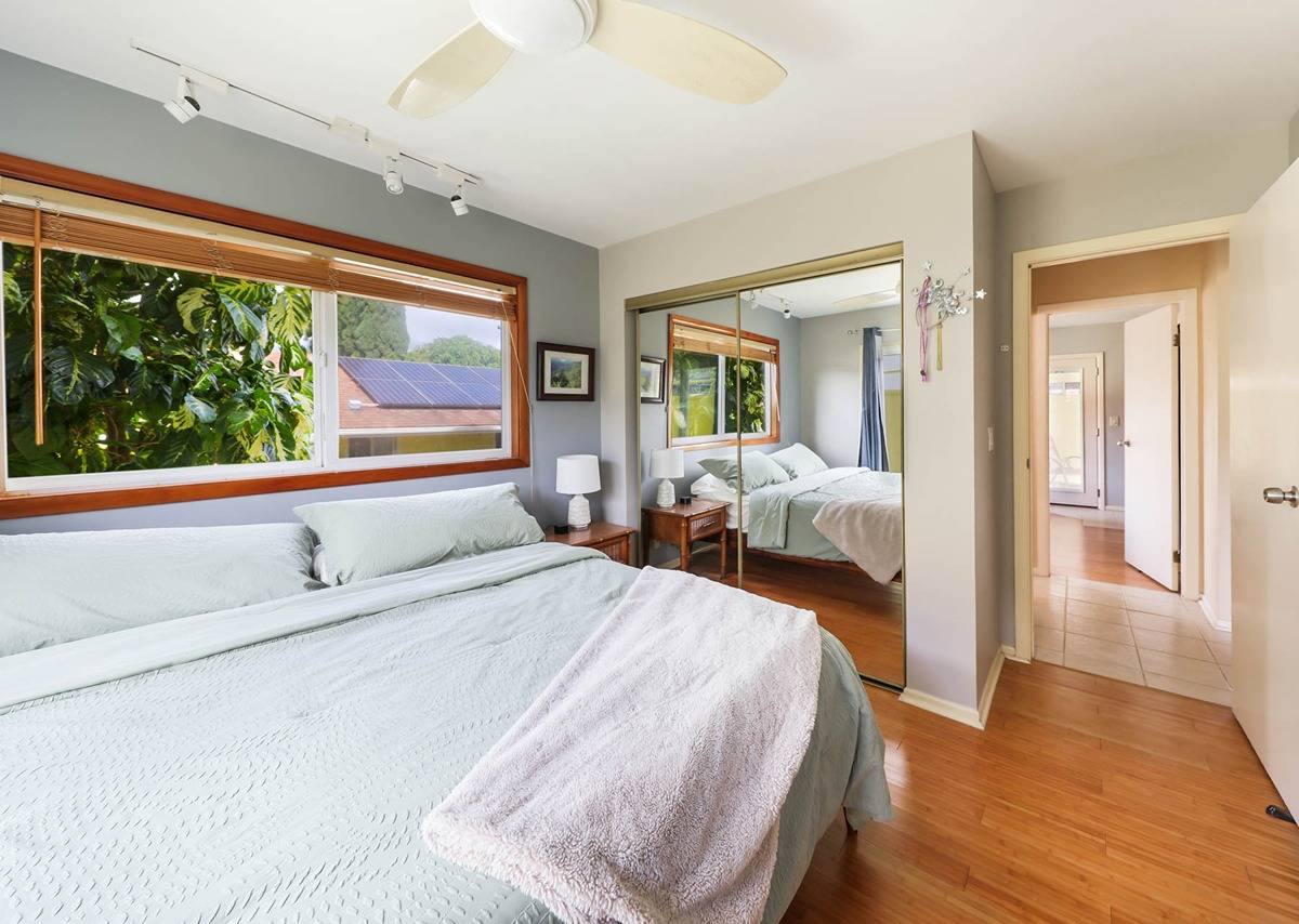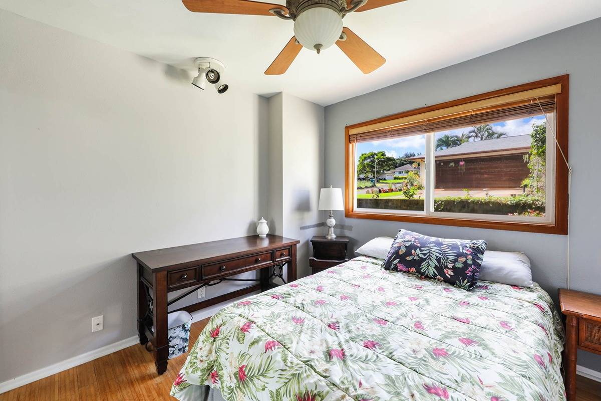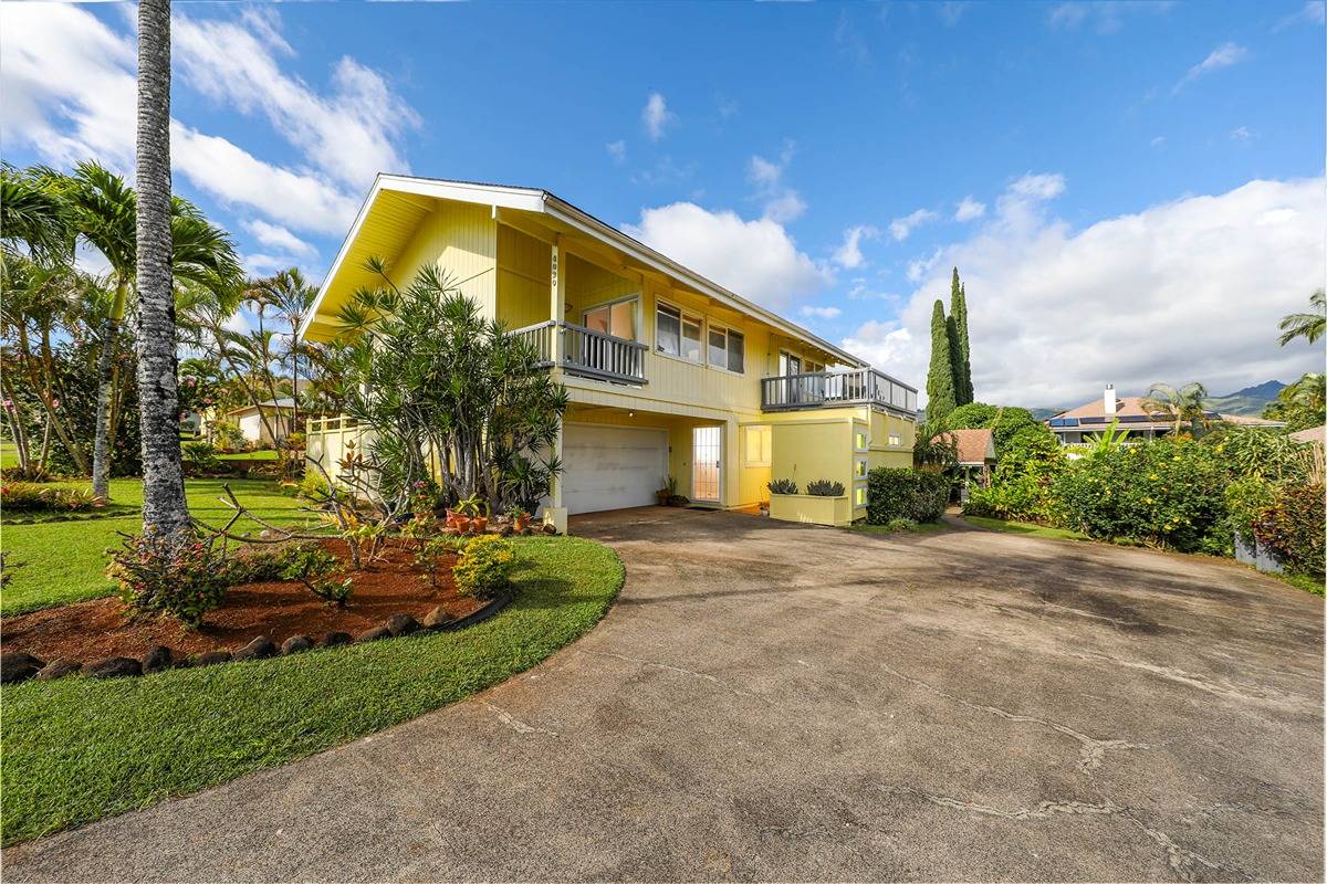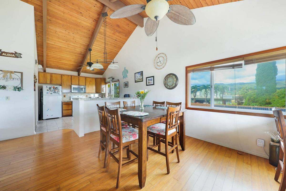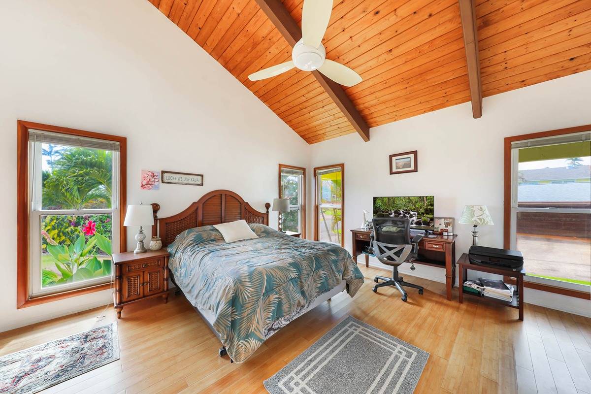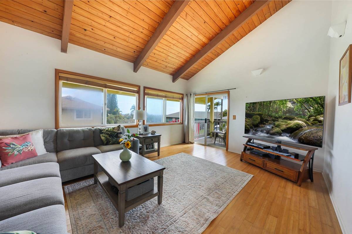 Welcome to 4020 Pai St, a charming 4-bedroom, 2.5-bathroom residence situated on the makai side of Kalaheo. The upper level, with high vaulted ceilings, greets you with a living area that offers a glimpse of the ocean and mountains, creating an inviting space for daily living. The open-concept kitchen, tile countertops and ceramic tile flooring, provides ample space for culinary adventures. Convenience meets functionality with two pantries, a laundry room, and a guest bathroom completing the upper level. Bamboo flooring throughout the living spaces and bedrooms adds warmth and tropical allure to the interior.