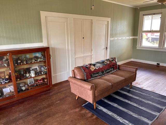French doors open to reveal a spacious, welcoming and bright living area. High ceilings can be seen throughout the home and assist with enlarging the rooms. Also, large windows can be seen upstairs adding loads of natural light to every space and corner. Did I forget to mention the original hardwood floors? With a little bit of buffing and polish, you can restore these floors back to shining. Bedrooms lay on each side of the living room and do not shy away in size - all are very spacious!