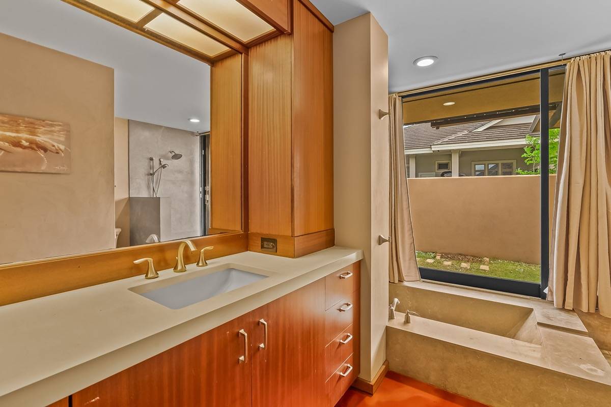 * Master Bathroom Shower has Travertine slab and custom bathtub
