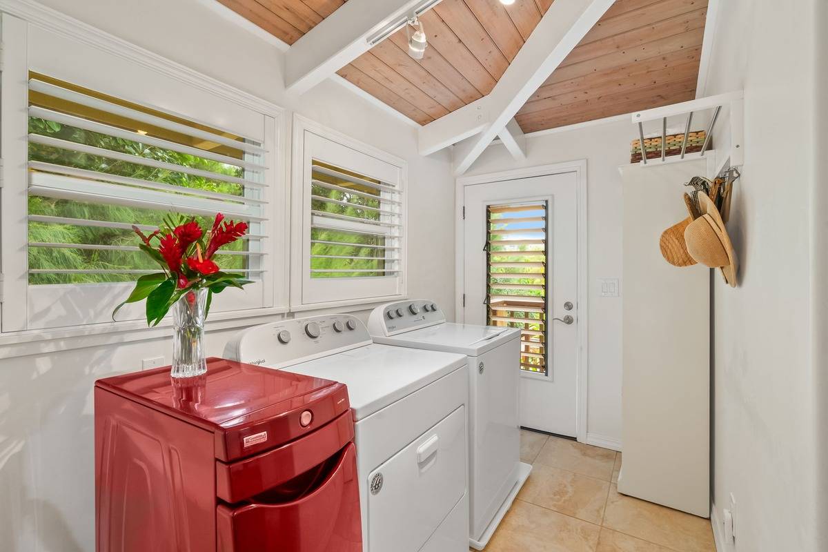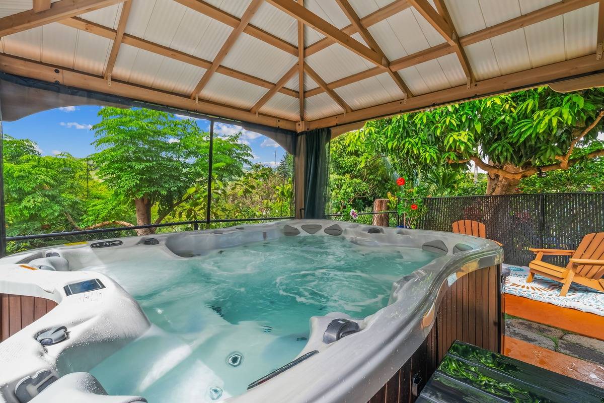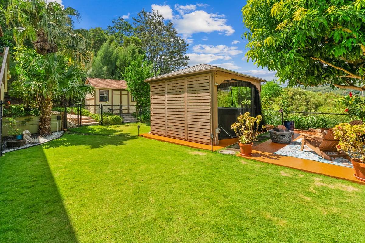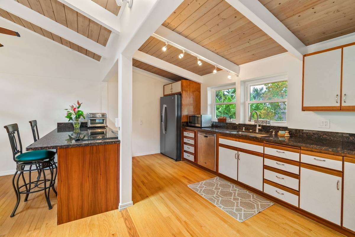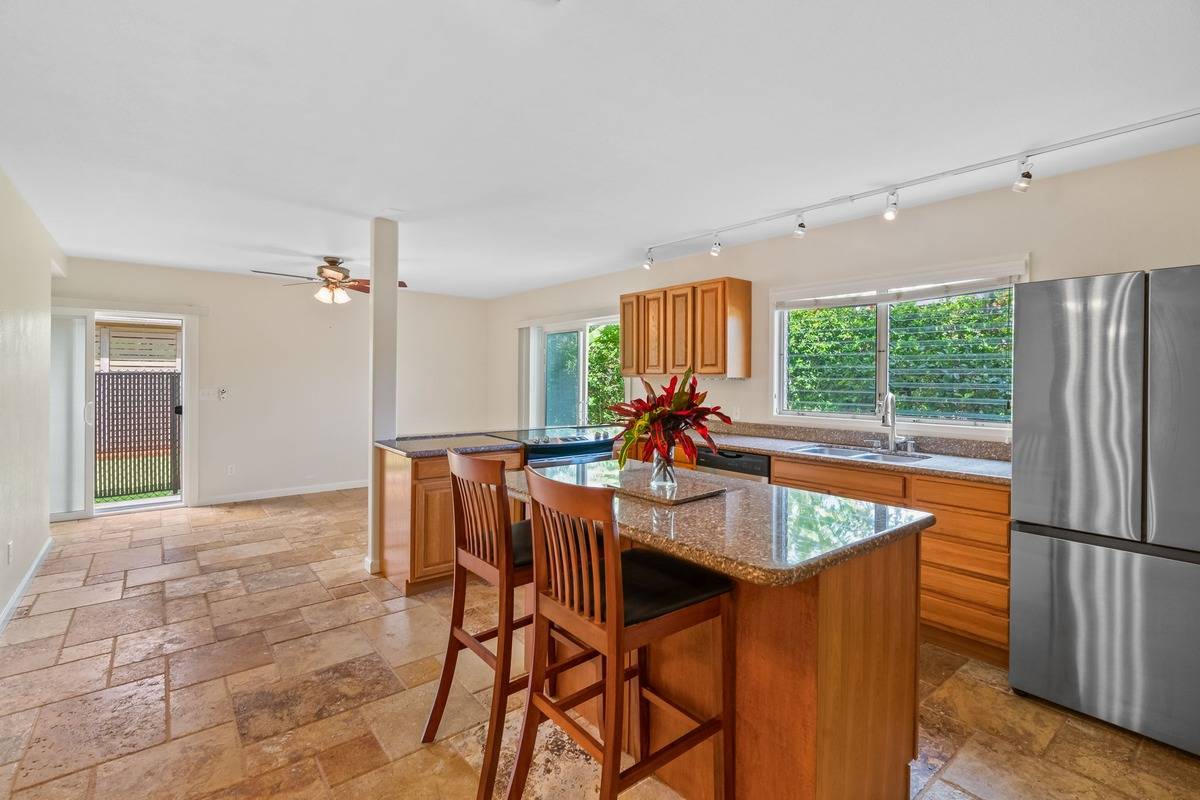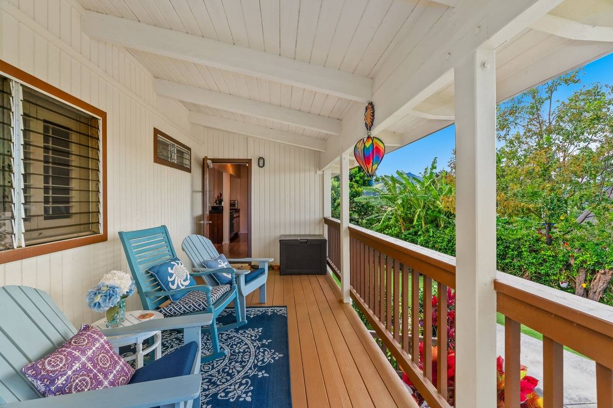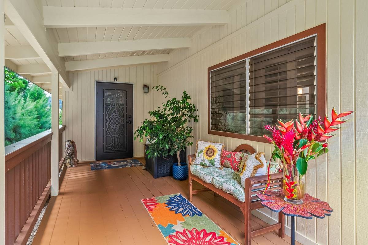 Well kept pristine home with quality upgrades in a peaceful Kalaheo neighborhood! Main home has 3 bedrms/2 bths & 1 bedrm/1 bth permitted additional dwelling w/laundry facilities. Private tropical paradise on 21,000 sqft. rim lot w/great views of Mt Kahili Owner occupied main home & ADU are each on 1 level. Relax or party in the permitted 8 person jacuzzi while enjoying the fire pit on it’s own thick slab under a stylish structure while taking in the mountain views. The 18 panel photovoltaic w/ tesla battery backup installed by Nathan Woods General contractor. Lots of hot water with the 2 solar water panels and a 120 gallon hot water heater helps to significantly reduces the electric bills & comes with a 47 to 49 yr warranty. Split AC/heater in the living room has 1 more free maintenance service appointment. Large storage/laundry room plumbed for additional bath/shower closet including new toilet & sink, plus a cute detached 8ft x 12ft storage building. Located on the sunnier side of Kalaheo in a quaint neighborhood on a quiet cul-de-sac w/long time owners. Within easy walking distance to Kukuiolono Golf Course at the golf restaurant. This property is owner loved! Main Home: Granite counters tops, Koa trimmed cabinets, Red Oak wood flooring in the living area, large porcelain tile floors in the bedrm & baths, 2 sky lights w/blinds, Quality vinyl louvers window treatments, Vinyl windows open in to clean, Putting green zoysia grass, Stainless steel electric 2 yr old GE double door refrigerator, Stainless steel 2 yr old double oven convection oven w/elect stove top, 5 yr comp roof, Nice paint job in & out. ADU: Travertine stone Italian tile floors in the bedrm & bths, Granite counter tops, New Samsung refrigerator. Extensive drainage system. Enjoy mature citrus and tropical fruit trees. The iron wood tree & variety of hibiscus hedge on 3 sides provides privacy. Chain link fence for the dogs and a home security system.