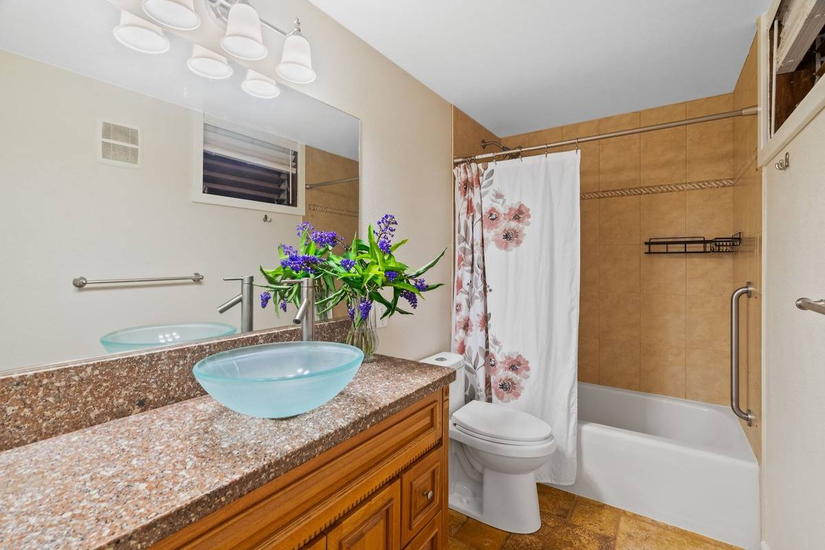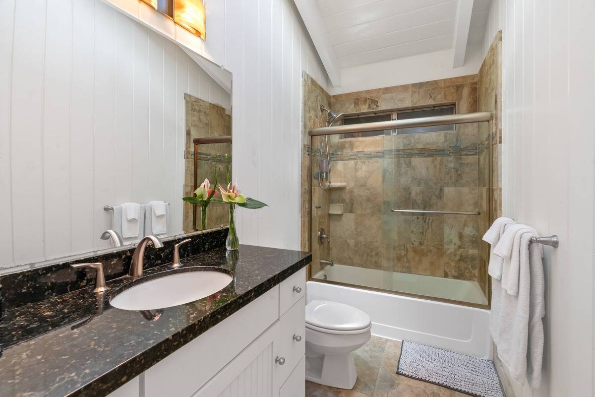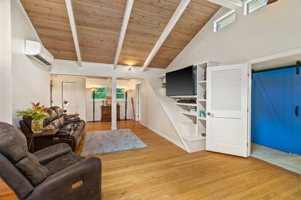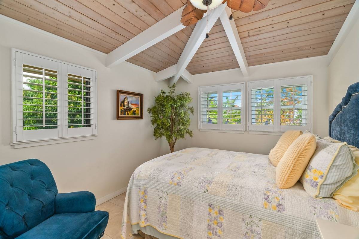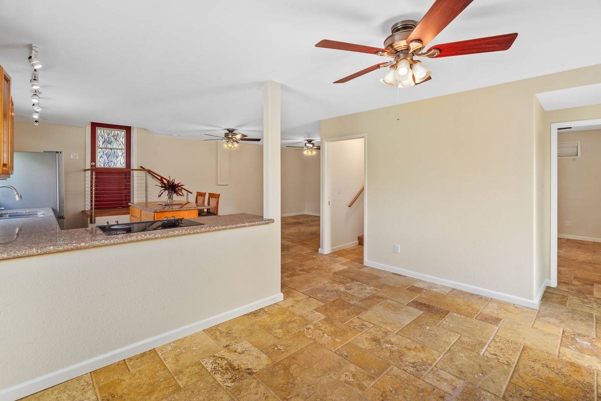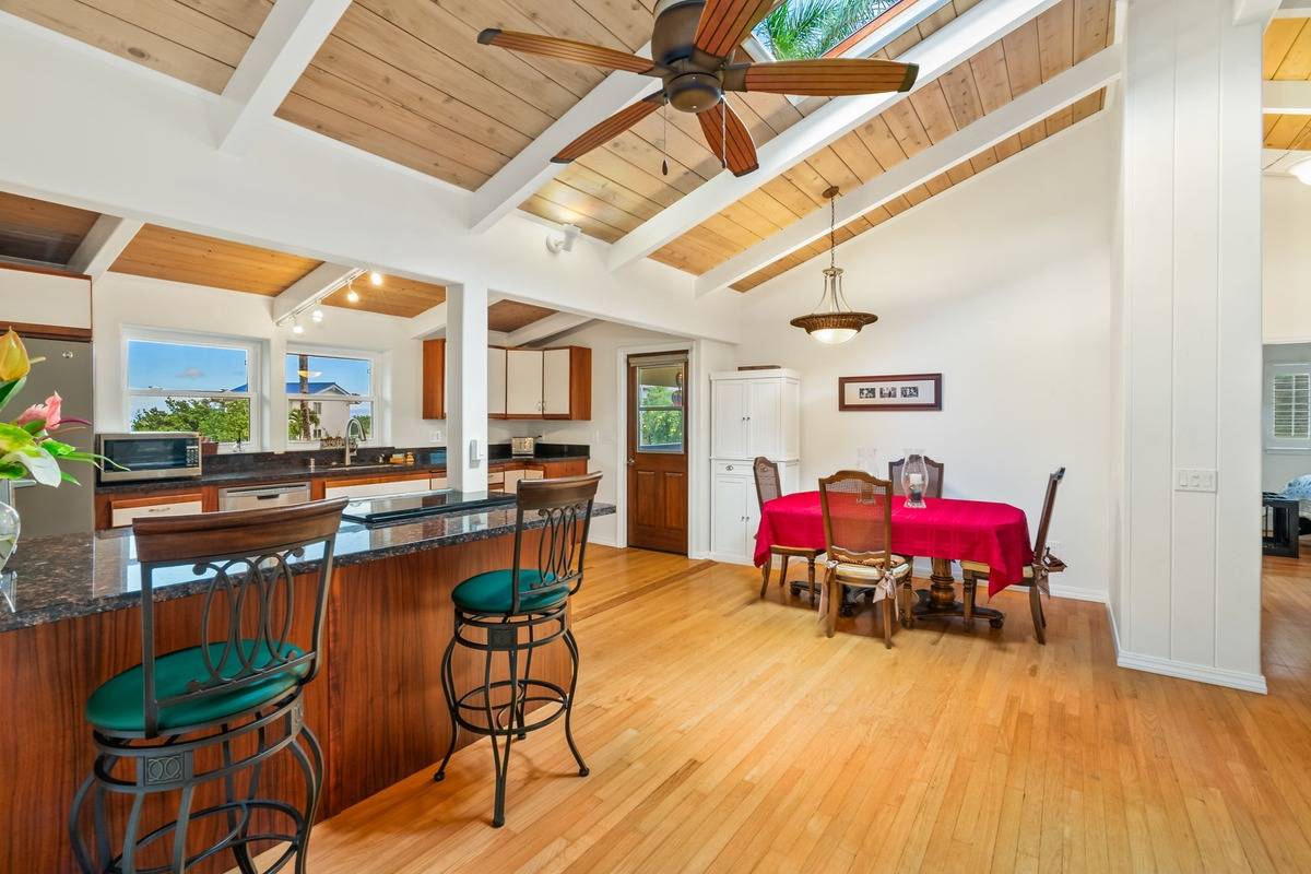 Well kept pristine home with quality upgrades in a peaceful Kalaheo neighborhood! Main home has 3 bedrms/2 bths & 1 bedrm/1 bth permitted additional dwelling w/laundry facilities. Private tropical paradise on 21,000 sqft. rim lot w/great views of Mt Kahili Owner occupied main home & ADU are each on 1 level. Relax or party in the permitted 8 person jacuzzi while enjoying the fire pit on it’s own thick slab under a stylish structure while taking in the mountain views. The 18 panel photovoltaic w/ tesla battery backup installed by Nathan Woods General contractor. Lots of hot water with the 2 solar water panels and a 120 gallon hot water heater helps to significantly reduces the electric bills & comes with a 47 to 49 yr warranty. Split AC/heater in the living room has 1 more free maintenance service appointment. Large storage/laundry room plumbed for additional bath/shower closet including new toilet & sink, plus a cute detached 8ft x 12ft storage building. Located on the sunnier side of Kalaheo in a quaint neighborhood on a quiet cul-de-sac w/long time owners. Within easy walking distance to Kukuiolono Golf Course at the golf restaurant. This property is owner loved! Main Home: Granite counters tops, Koa trimmed cabinets, Red Oak wood flooring in the living area, large porcelain tile floors in the bedrm & baths, 2 sky lights w/blinds, Quality vinyl louvers window treatments, Vinyl windows open in to clean, Putting green zoysia grass, Stainless steel electric 2 yr old GE double door refrigerator, Stainless steel 2 yr old double oven convection oven w/elect stove top, 5 yr comp roof, Nice paint job in & out. ADU: Travertine stone Italian tile floors in the bedrm & bths, Granite counter tops, New Samsung refrigerator. Extensive drainage system. Enjoy mature citrus and tropical fruit trees. The iron wood tree & variety of hibiscus hedge on 3 sides provides privacy. Chain link fence for the dogs and a home security system.