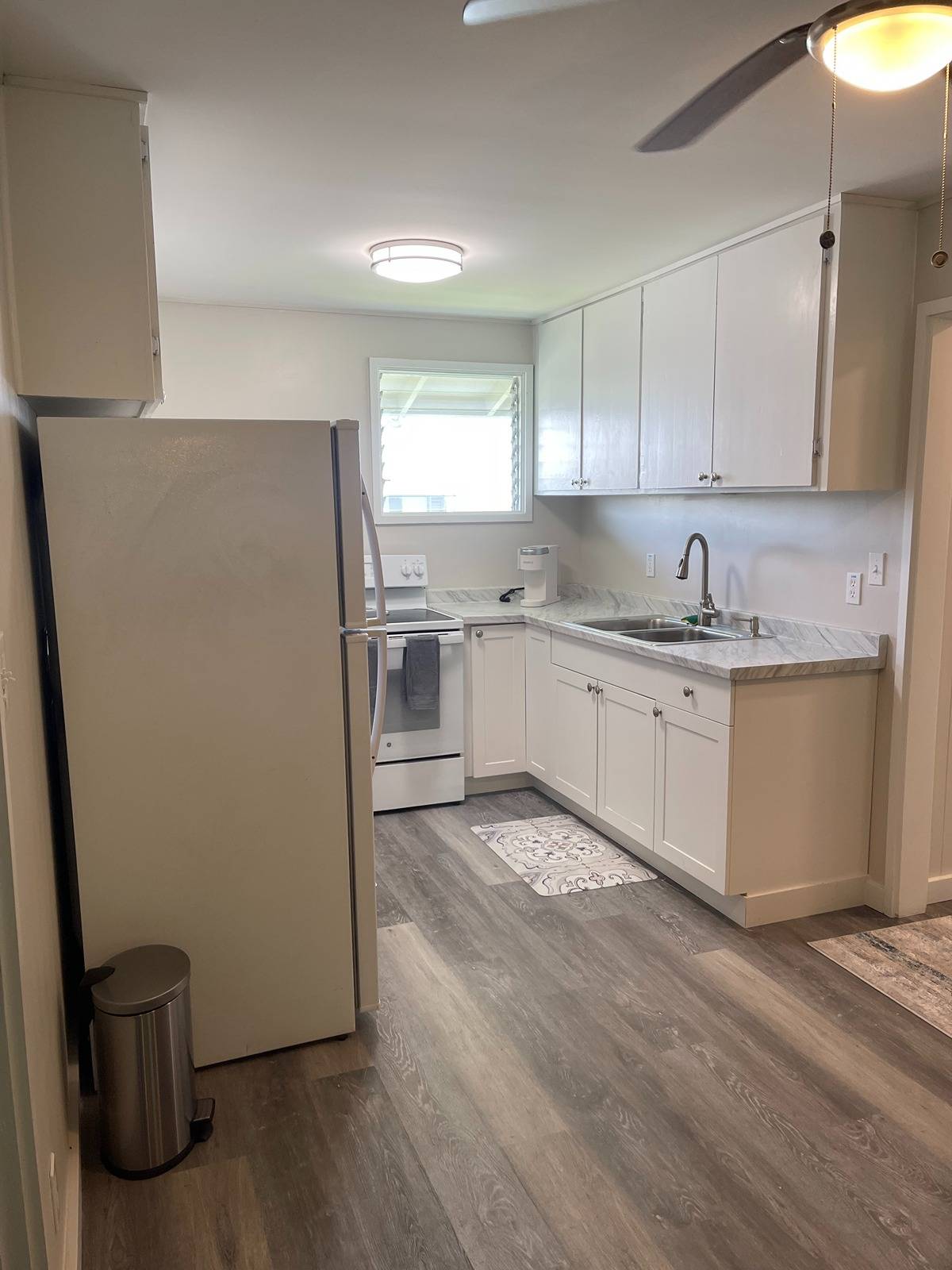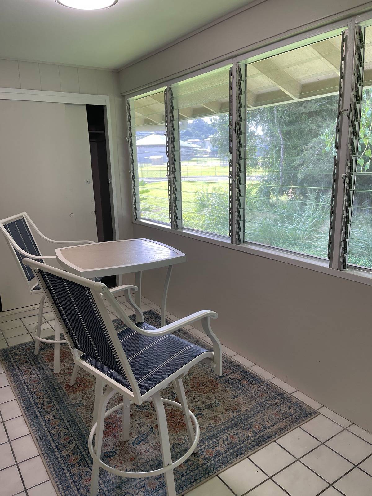 The upper corner building located next to the pool, laundry room, and mail boxes. A refreshed Hilo Terrace turn key 2 bedroom, 1 bath condo new flooring, interior paint, bathroom fixtures and walk in shower, updated kitchen with refrigerator and stove. This unit has a extra sun room great for an extra bedroom, office, hobbies or anything you can imagine. Furniture included in sale.