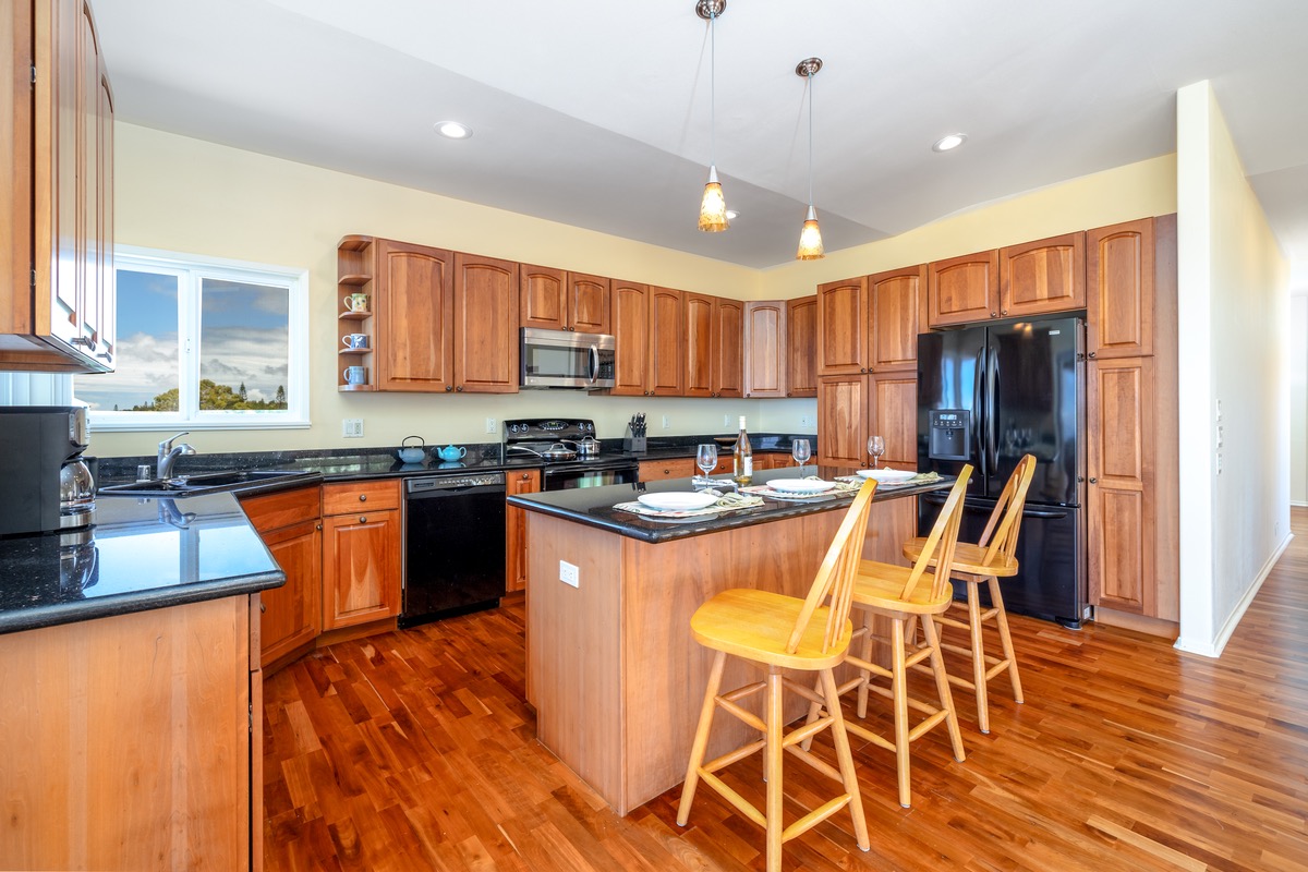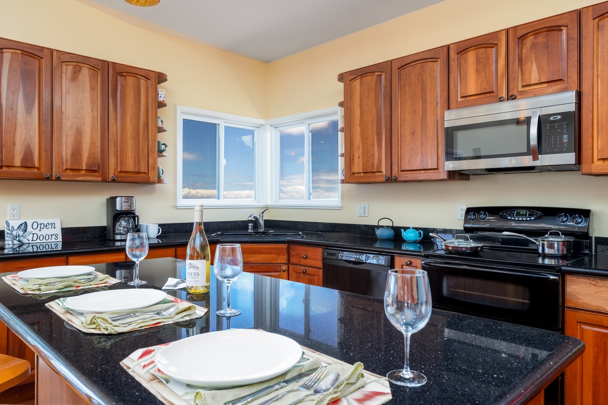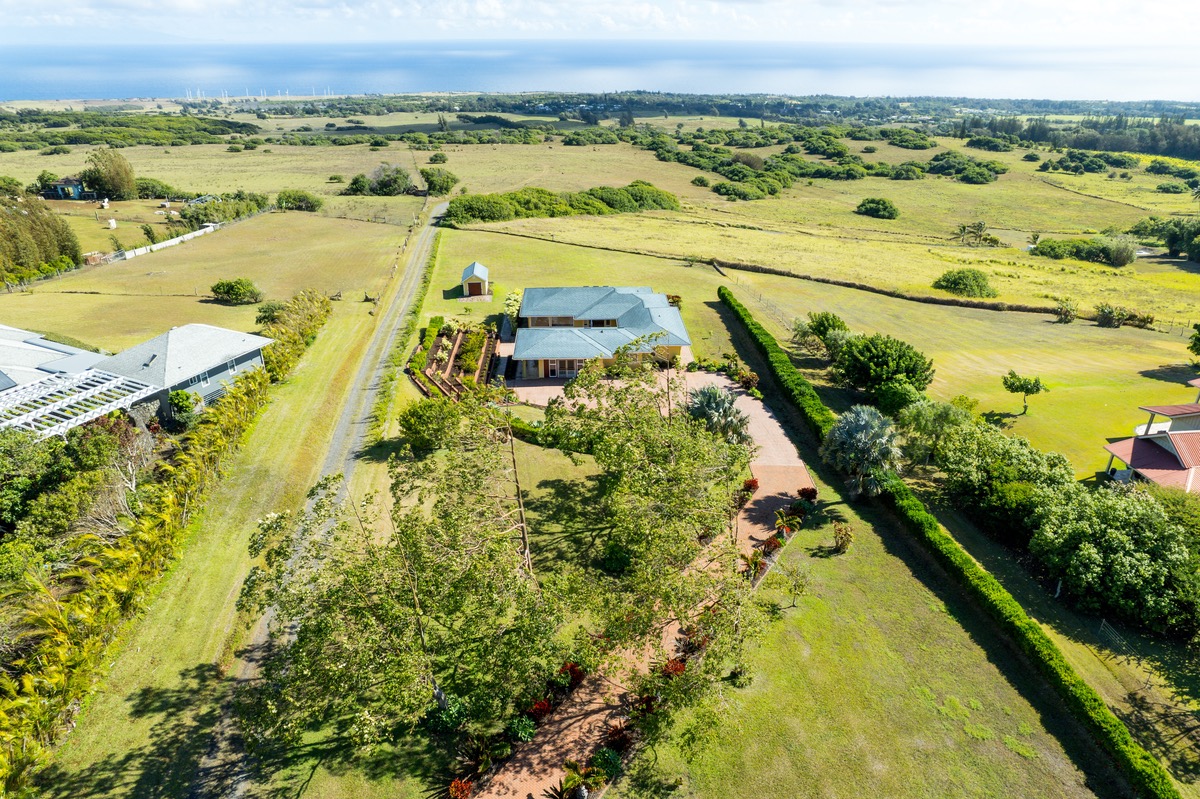 Incredible Maliu Ridge Custom Home with a stunning 180-degree ocean, coastline, and green pasture views! Situated at approximately 1200' elevation and on 1.97 acres, the weather is ideal. This is a rare opportunity, do not wait!