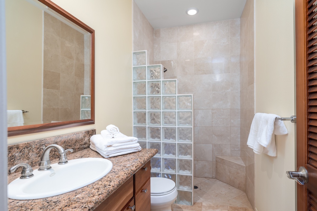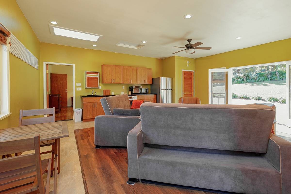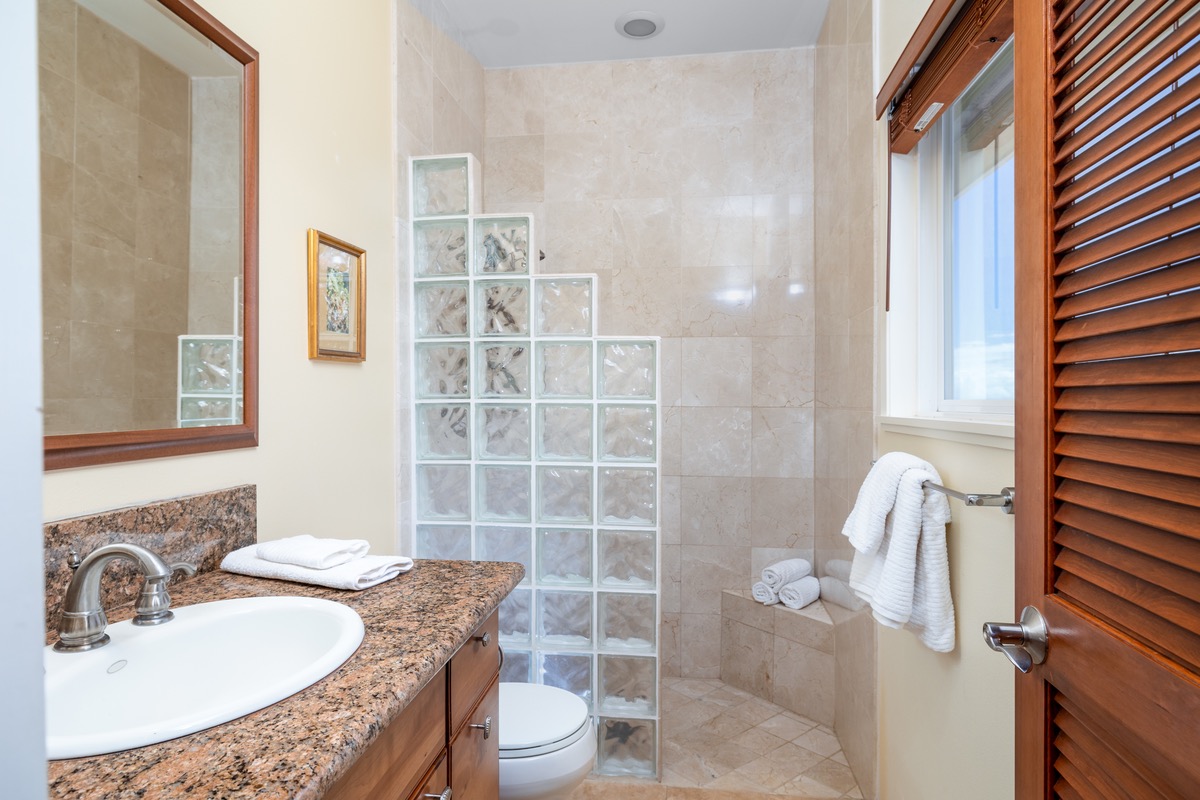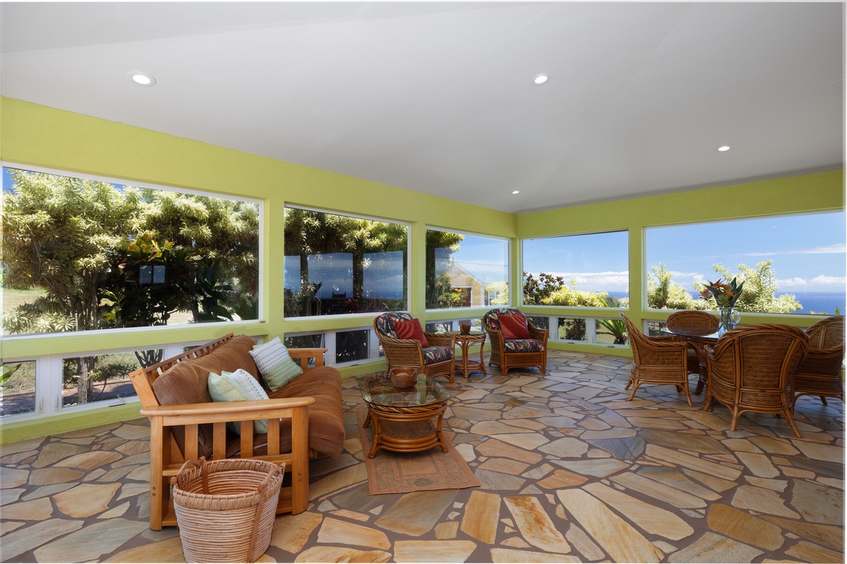A large 423 SF glass-enclosed Family Room is off the living room with stunning direct ocean and garden views. This area would also be perfect for use as a large master suite. The two ensuite bedrooms have private baths, walk-in closets, and beautiful pasture/ocean views.