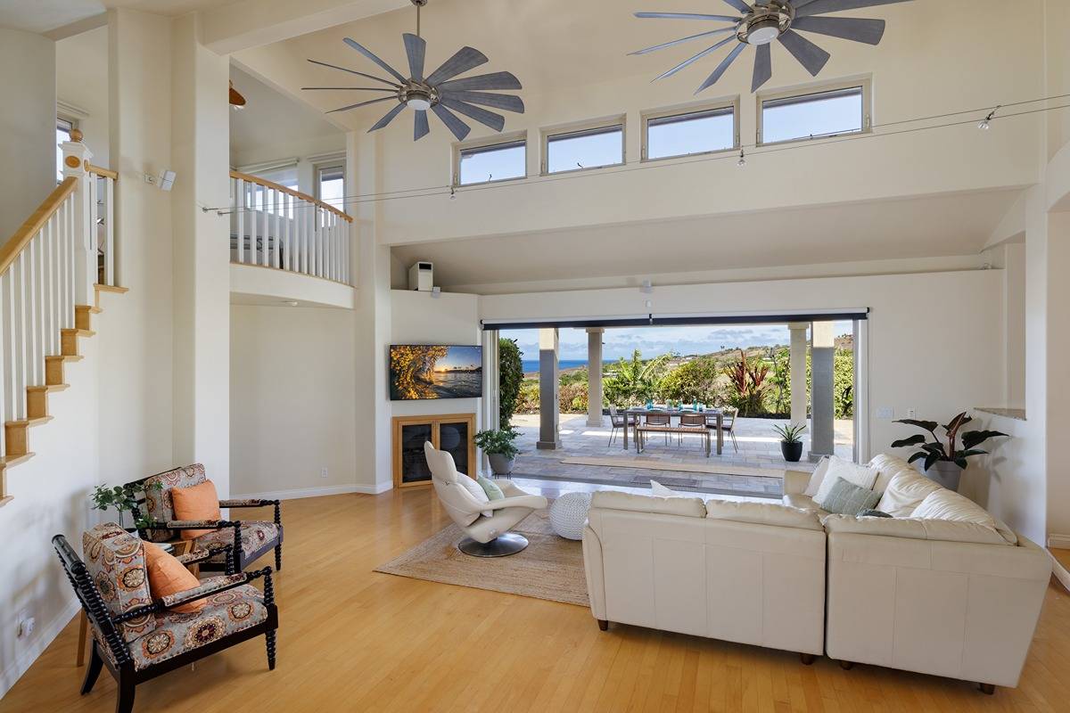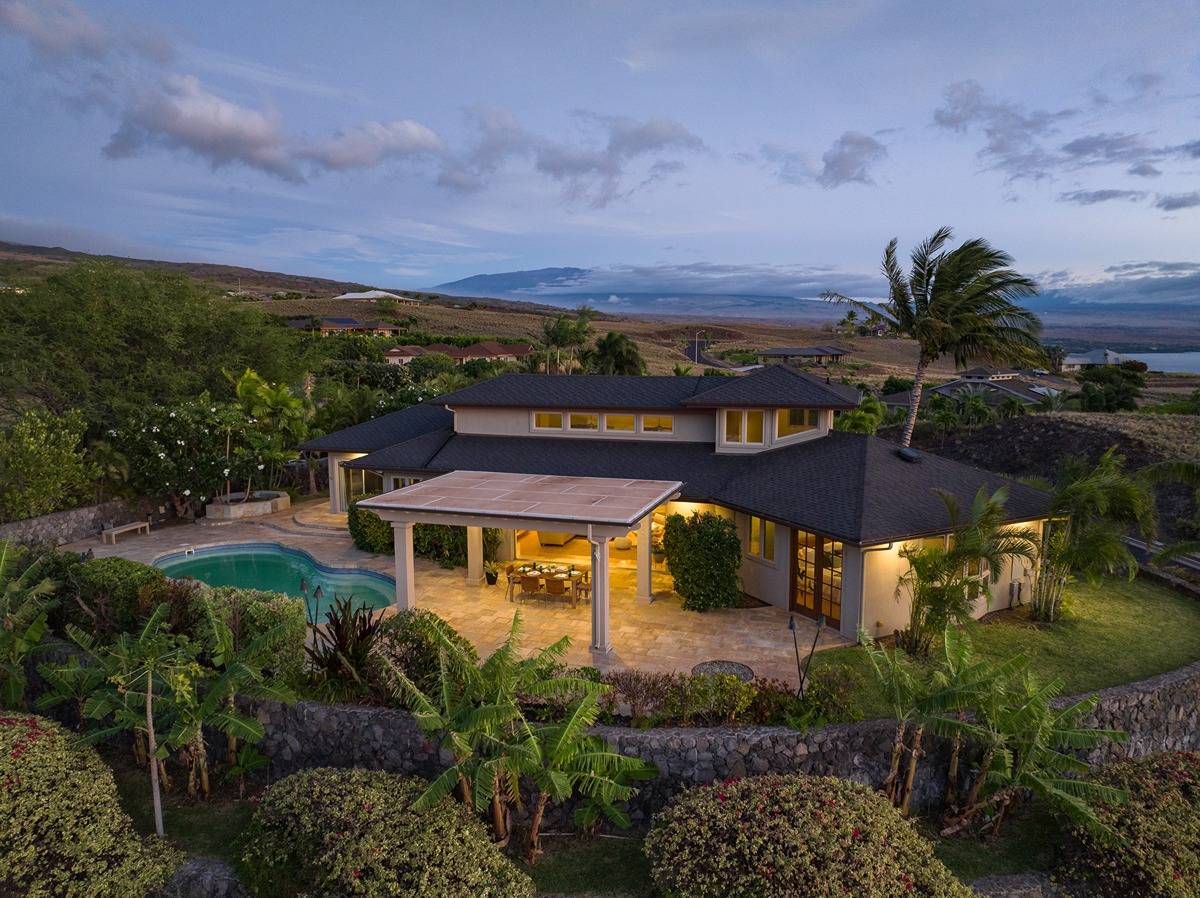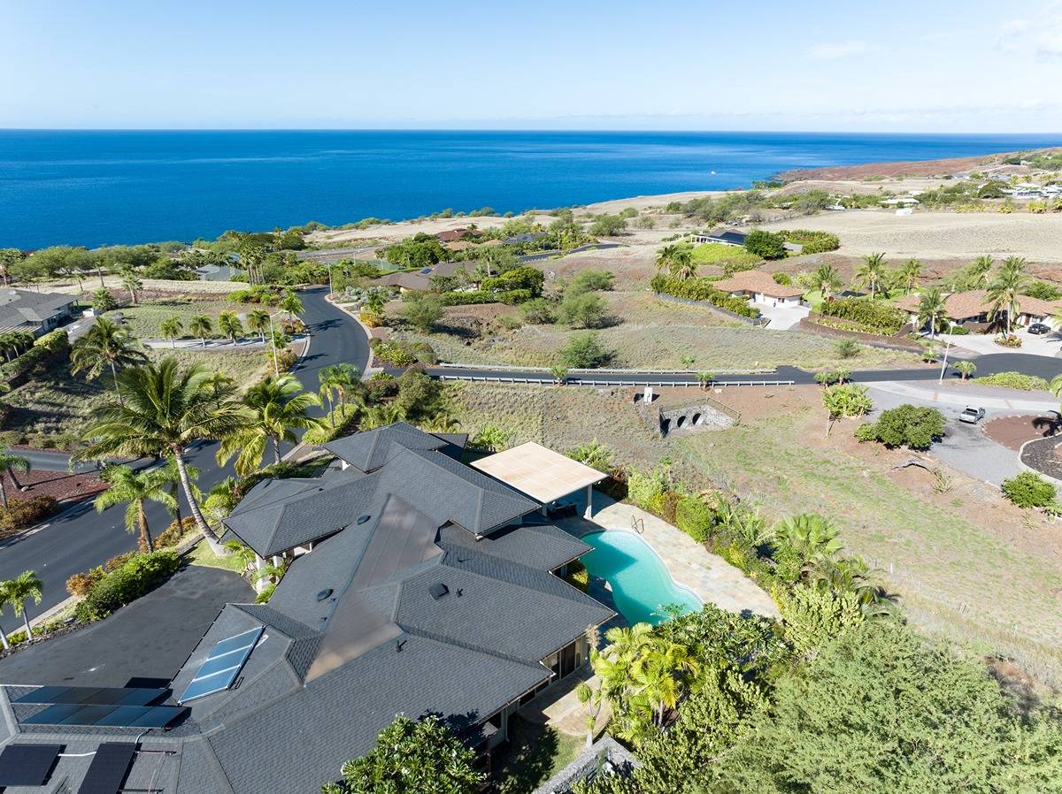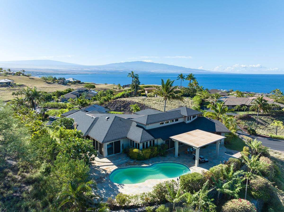 Kohala by the Sea…a lovely, small, gated enclave of custom homes on the North Kohala coastline of the Big Island of Hawaii within minutes of historic Waimea, world class beaches and golf, and all the amenities of multiple four-star resorts. Every lot (approx. 70+/-) is one acre or more with views of the ocean, coastline, the surrounding mountains of Mauna Kea, Mauna Loa, Hualalai and the Kohala’s, seasonal whale watching and other abundant daily sea life activity. This one-acre lot is uniquely elevated which affords views well above, over the top and beyond any homes between this and the ocean. The home has been loved and cherished by only a small handful of previous owners and is now ready to hand off to the next resident, primed and ready for immediate occupancy, the sellers are looking to close as soon as possible. Certainly not at all passed its prime in the current condition, the home has an interesting and compelling floor plan perfect for a visionary who understands the possibilities for creating a new personal retreat, inspired by the intrinsic value of the location, the near perfect climate, and views. The county of Hawaii ranks the construction quality at a 6, one of the higher ratings given. A photovoltaic system and solar hot water system keeps the costs manageable for the pool and AC system. The low Homeowners Association fees of $330.00 per month are also a plus. Maple flooring throughout, the home has a natural, modern vibe with arches and north facing windows at 20’ or so. The kitchen and laundry room cabinets are of locally grown mango wood; quite rare and providing an authentic Hawaiian lifestyle component. A 3-car garage may provide enough length for a boat which you could launch only minutes away at Kawaihae harbor. An added but special bonus is a loft which serves perfectly as an office or yoga/mediation/art space.