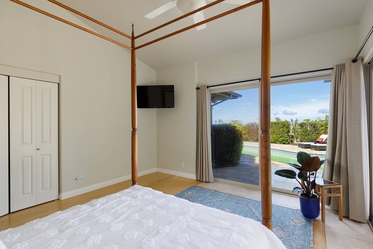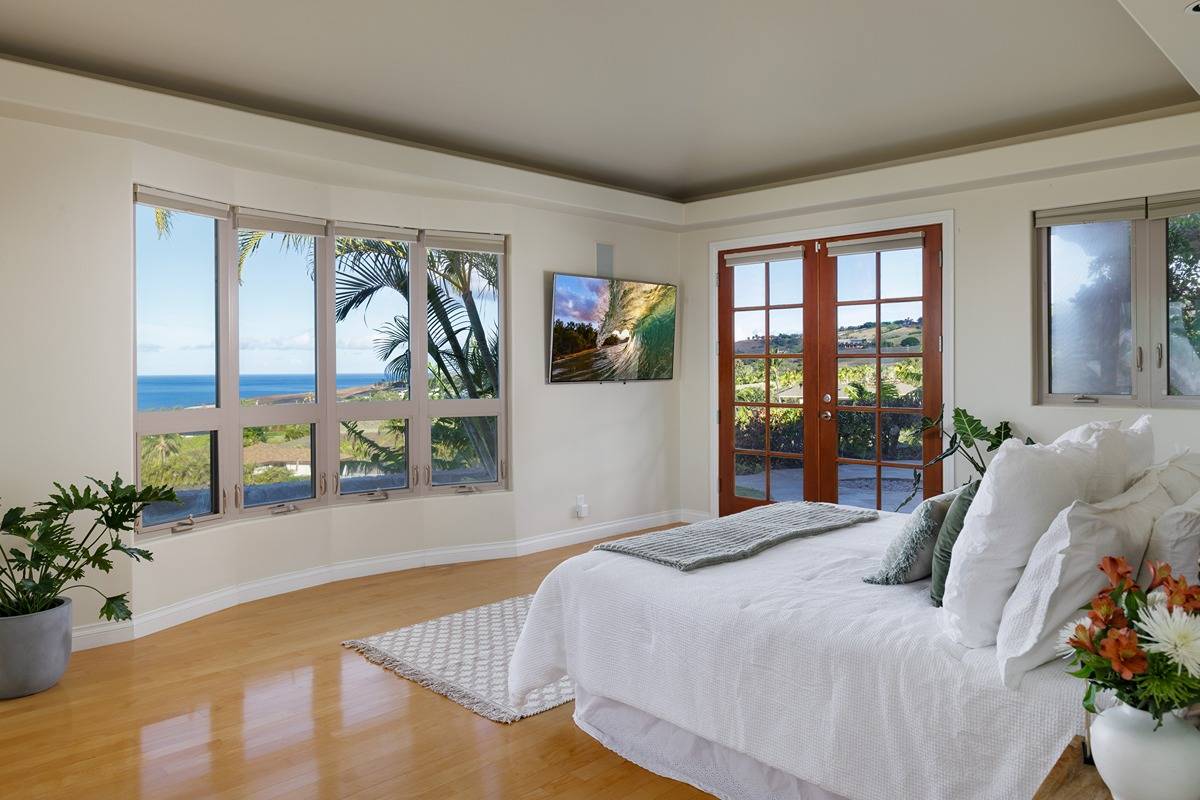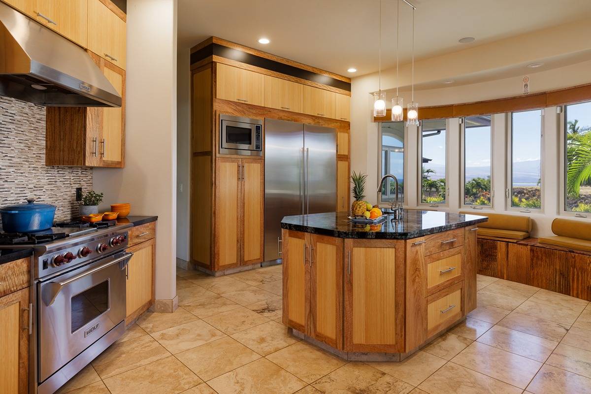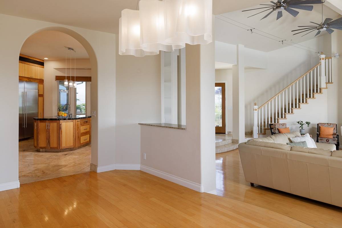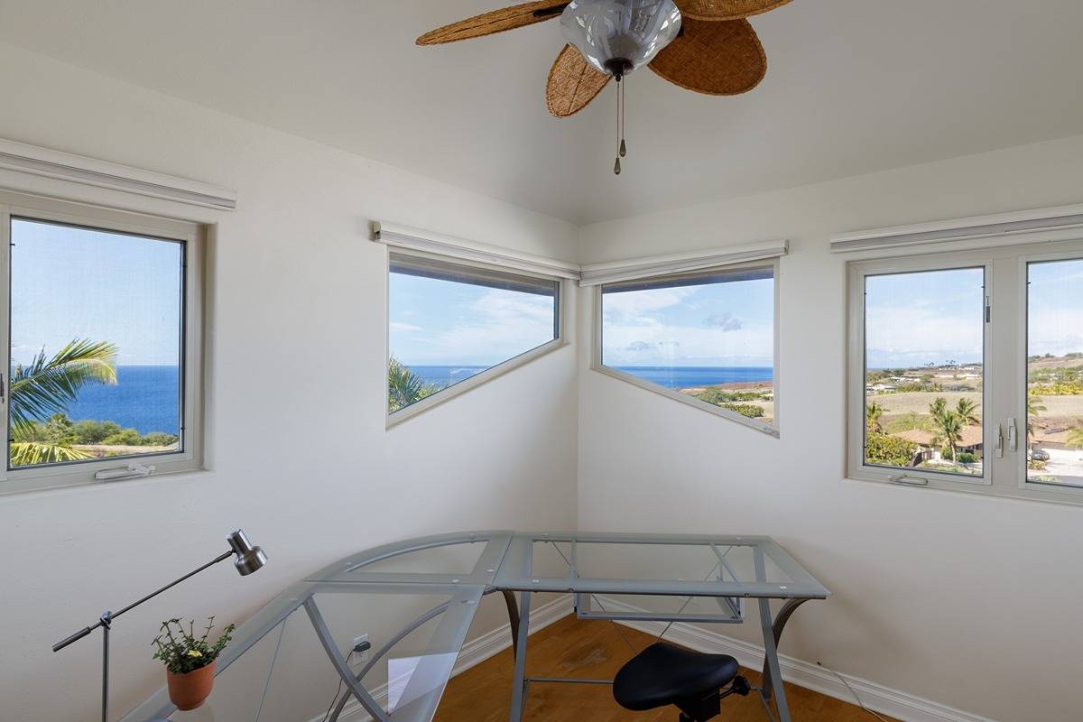 Kohala by the Sea…a lovely, small, gated enclave of custom homes on the North Kohala coastline of the Big Island of Hawaii within minutes of historic Waimea, world class beaches and golf, and all the amenities of multiple four-star resorts. Every lot (approx. 70+/-) is one acre or more with views of the ocean, coastline, the surrounding mountains of Mauna Kea, Mauna Loa, Hualalai and the Kohala’s, seasonal whale watching and other abundant daily sea life activity. This one-acre lot is uniquely elevated which affords views well above, over the top and beyond any homes between this and the ocean. The home has been loved and cherished by only a small handful of previous owners and is now ready to hand off to the next resident, primed and ready for immediate occupancy, the sellers are looking to close as soon as possible. Certainly not at all passed its prime in the current condition, the home has an interesting and compelling floor plan perfect for a visionary who understands the possibilities for creating a new personal retreat, inspired by the intrinsic value of the location, the near perfect climate, and views. The county of Hawaii ranks the construction quality at a 6, one of the higher ratings given. A photovoltaic system and solar hot water system keeps the costs manageable for the pool and AC system. The low Homeowners Association fees of $330.00 per month are also a plus. Maple flooring throughout, the home has a natural, modern vibe with arches and north facing windows at 20’ or so. The kitchen and laundry room cabinets are of locally grown mango wood; quite rare and providing an authentic Hawaiian lifestyle component. A 3-car garage may provide enough length for a boat which you could launch only minutes away at Kawaihae harbor. An added but special bonus is a loft which serves perfectly as an office or yoga/mediation/art space.