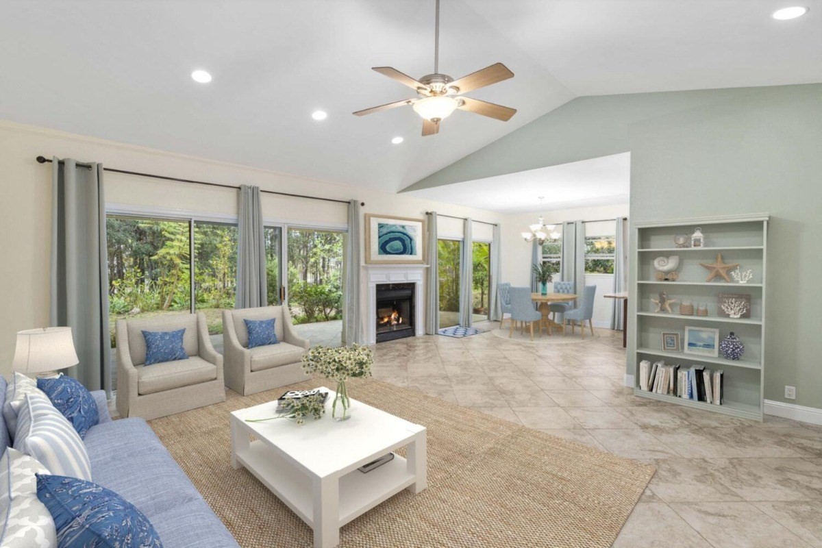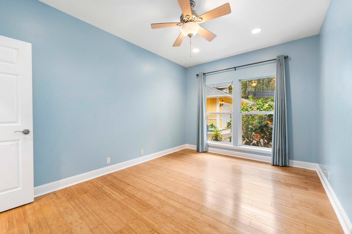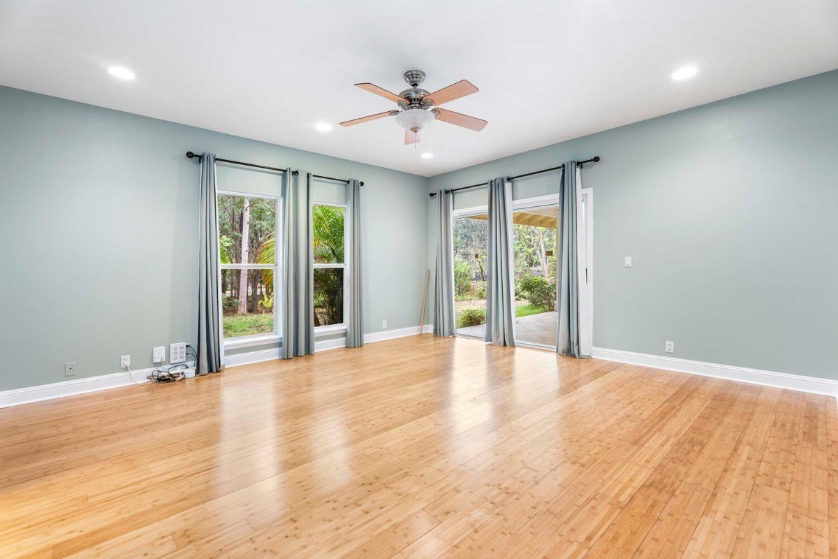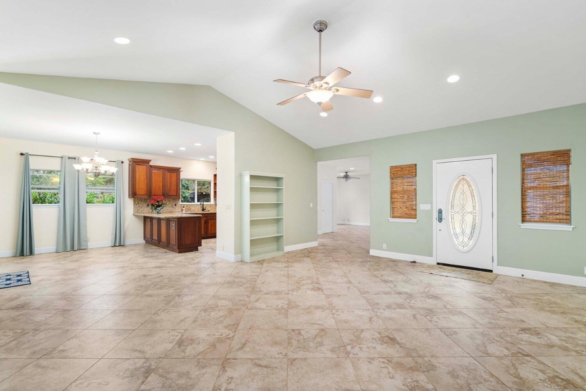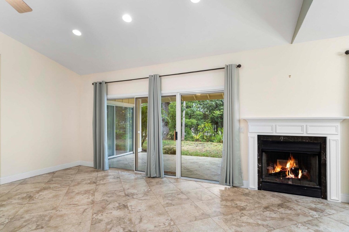 the kitchen and living room areas with a wood burning fireplace that says quality throughout. The Master Bedroom has bamboo flooring; walk in closet; and spa tub & walk in tile shower with peaceful ambiance. Surrounded by forest and touch of bamboo, this home sits in its own special environment. There are several kinds of Hybrid Hibiscus, poinsettias, areca palm trees, kona coffee trees, several citrus fruit trees, dragon fruit, breadfruit, producing avocados, papayas and more, this home invites more gardening-grow your own vegtables and more herbs!