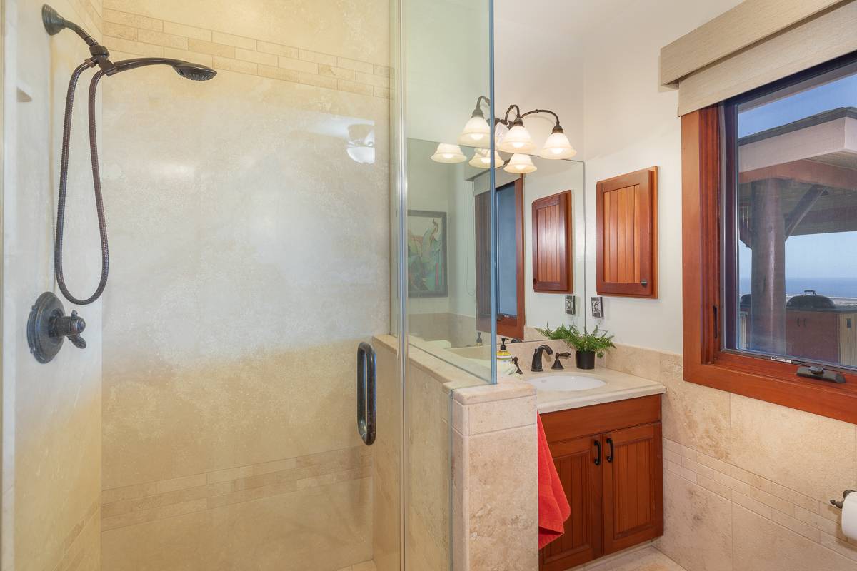 The craftsmanship is truly stunning! Each bedroom has it's own exquisitely detailed bathroom dressed in beautiful granite through out. Step out of the granite laced showers of the primary bath and guest suite, and you step into a beautifully designed out door shower area just like at the resorts!