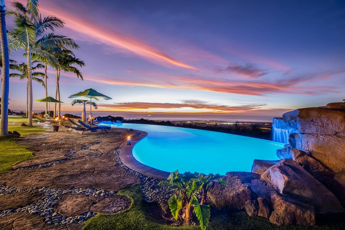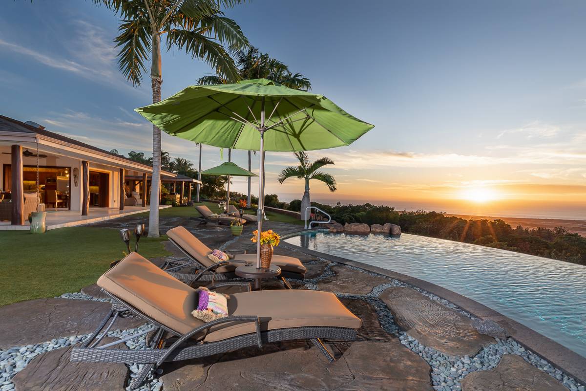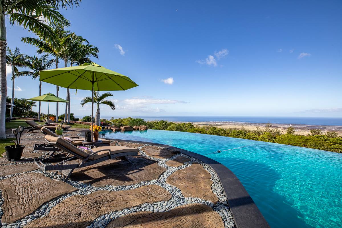 Magnificent 180 degree Ocean view and Amazing sunsets with a 60’ Infinity edge pool, an oversized spa, a fire pit and so much more on 3 stunning acres! PV! Privacy!