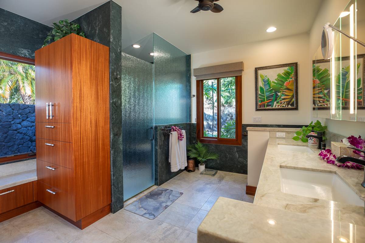 This custom home is everything your looking for with a Hawaiian fusion of exquisite stone flooring and wood finishes of African Mahogany, Ohia and more.