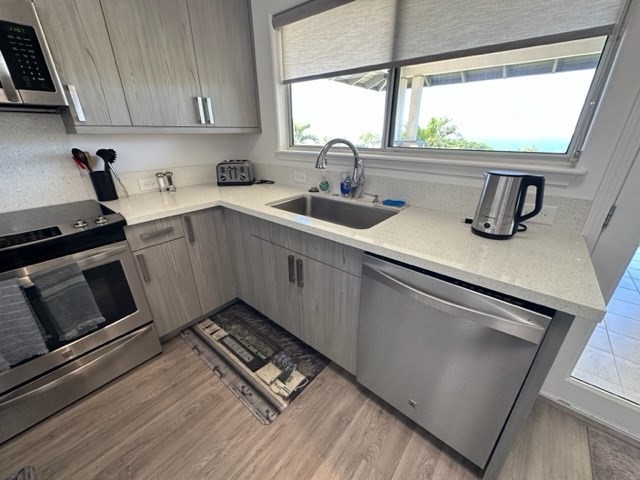 Location, Location, Location. This gated community is minutes away from shopping, downtown Kailua Kona and Kailua Pier. This attractive fee simple single level home is located in one of the most desirable location in Malulani Gardens. This upgraded 2 bedroom and 2 bath home has outstanding ocean views from the back lanai. Great for entertaining, relaxing, and or just enjoying the view.