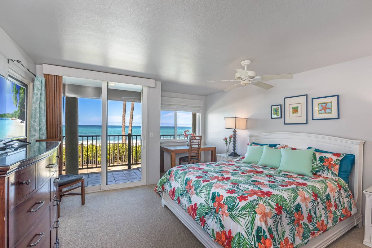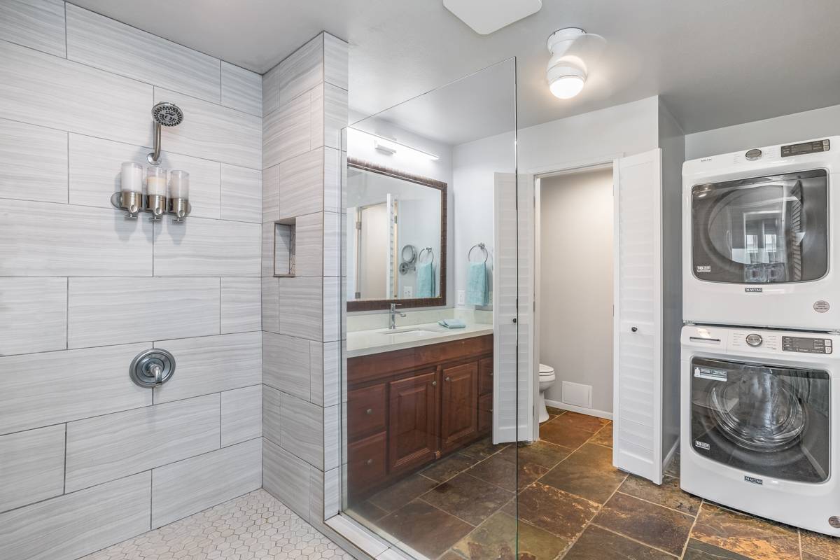 Oceanfront primary suite with washer, dryer, walk-in shower & huge closet.
