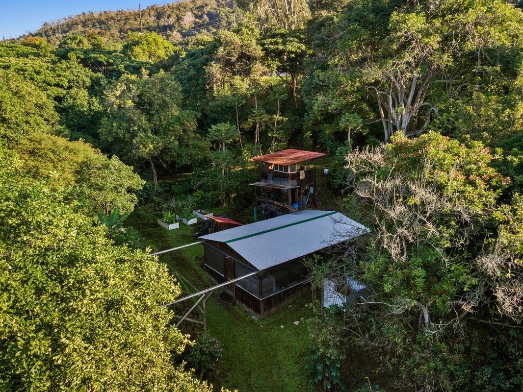 This lovely gentleman's farm features a variety of crops including Coffee, Macadamia nuts, Avocados, and Bananas. The steward of this property uses a sustainable permaculture approach to farming, avoiding the use of harmful chemicals and maximizing the reuse of organic matter from the farm. The land has been terraced to resist erosion and promote soil health. The large canopy of trees provide the perfect shade for superior shade grown Kona coffee. Biodiversity promotes healthy crops and a healthy ecosystem.
