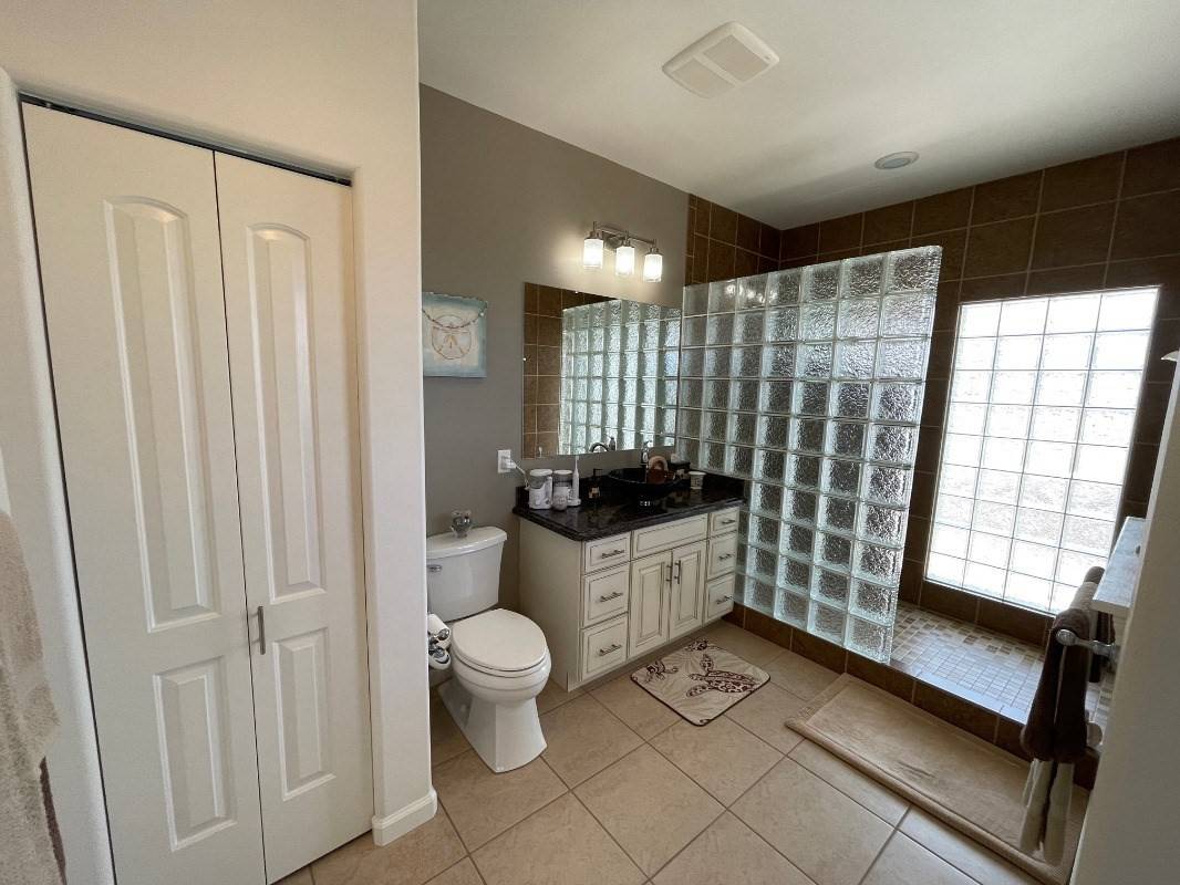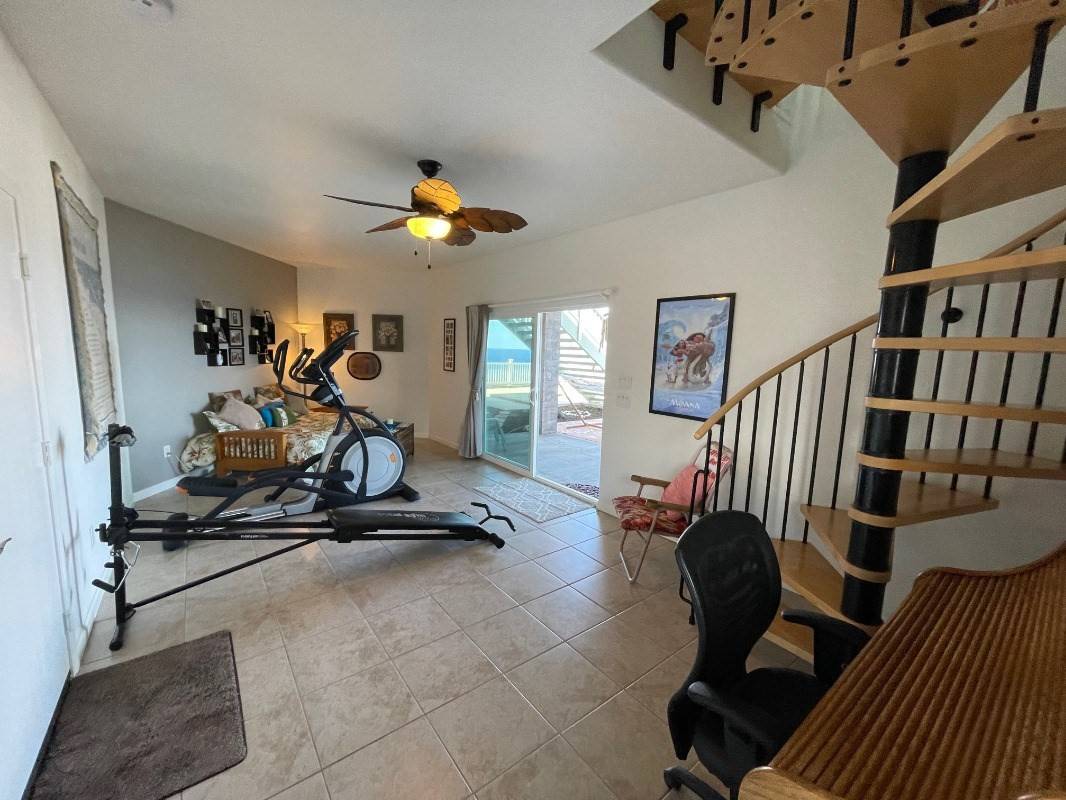 Downstairs offers numerous possibilities. Currently used as an Exercise Room and sometime Guest Room. There's an additional 1/2 Bathroom, Outdoor Shower and Patio Area with a Picnic Table and Hammock. A 540 sq ft 2 Car Attached Garage with Storage and Laundry too.