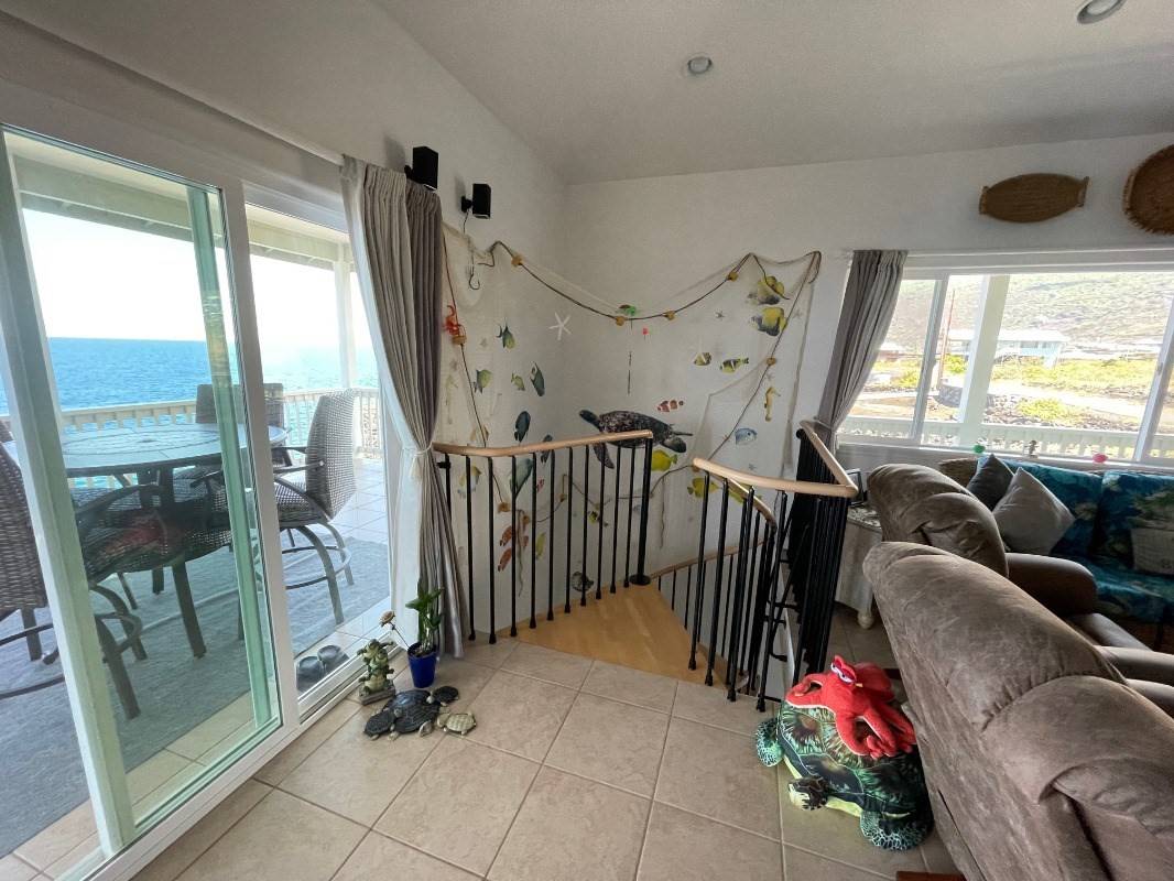 Upstairs has Open Kitchen/Living Area with Huge Glass Doors that go out to the massive wrap-around Lanai. A Big Primary Bedroom with Ensuite Bath, Walk-in Shower and Direct Lanai Access. The 2nd Bedroom and Bathroom are very well appointed with Lanai Access too.