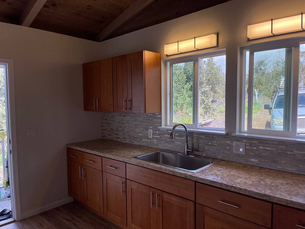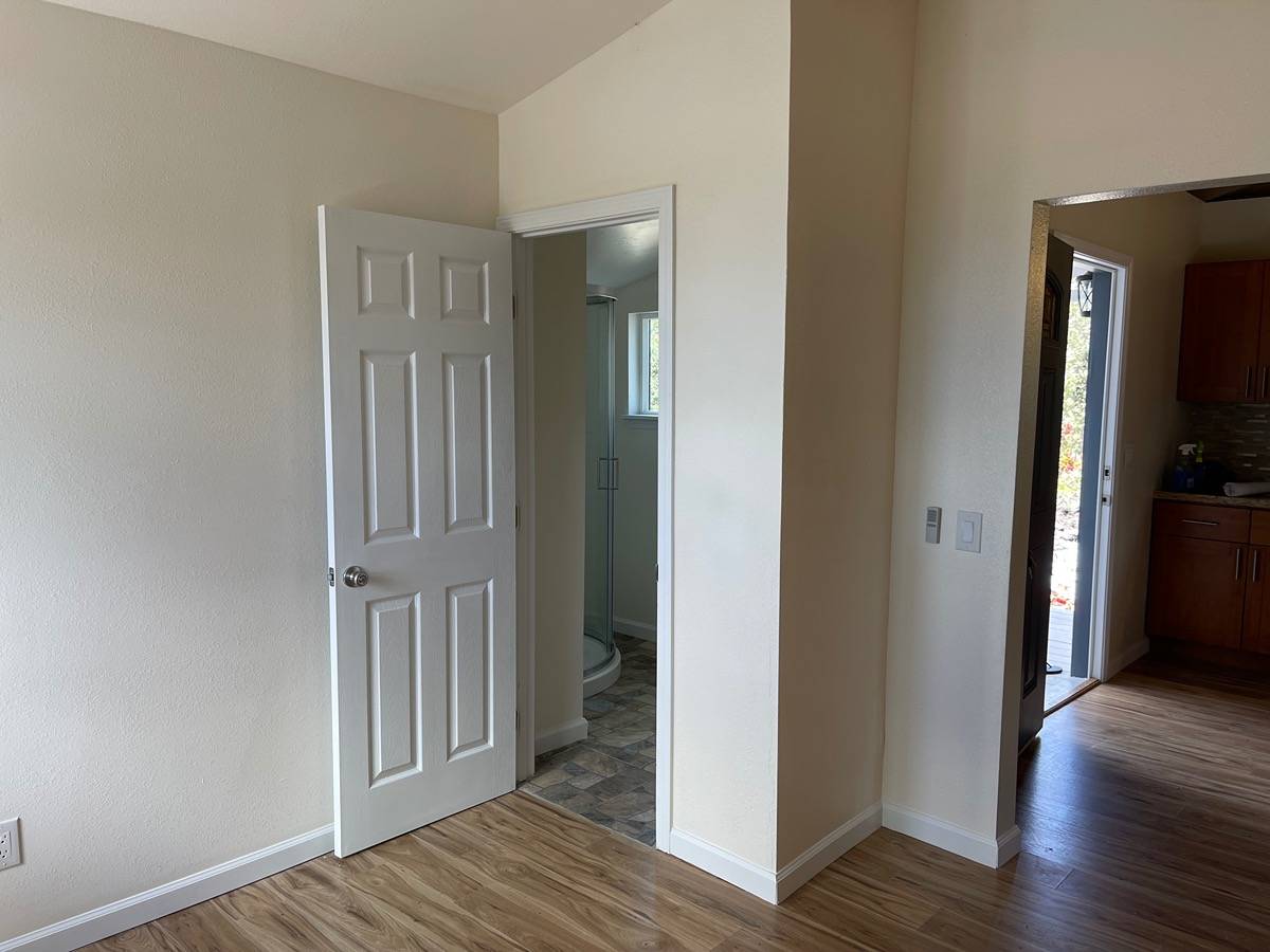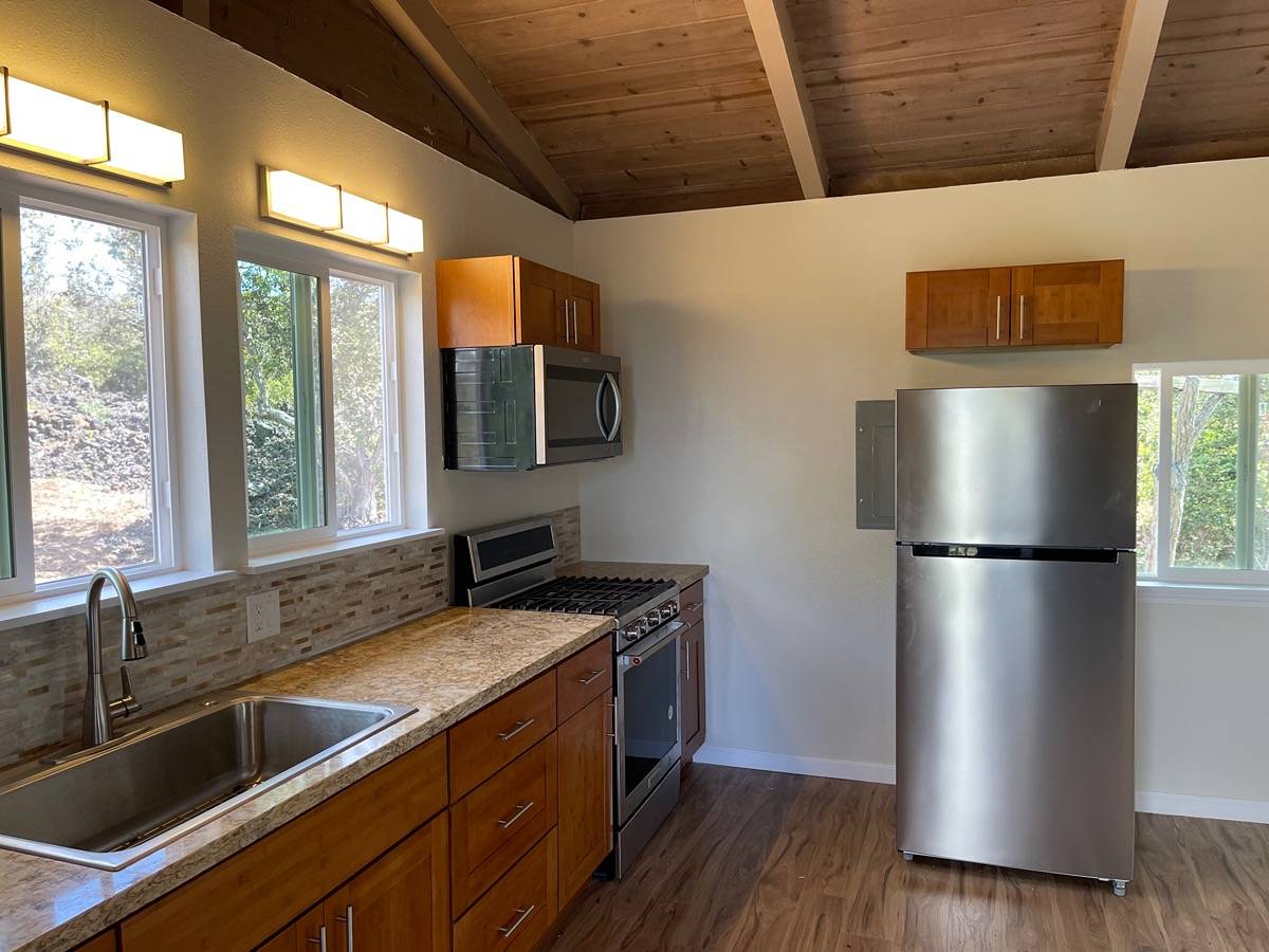 Almost Brand New Build with Ocean Views in Hawaiian Ocean View Estates! Desirable wide corner lot with a completely transformed home awaits! This turnkey home features a nice wide entry to an open kitchen/dining room large enough for a dining table or island workspace with brand new cabinetry, granite counters and a suite of stainless steel appliances. The versatile living space allows for a bedroom & living room, or maybe you need 2 bedrooms? Perhaps an office space? Endless options for you to make the house your home. Brand new flooring underfoot and a completely renovated bathroom.