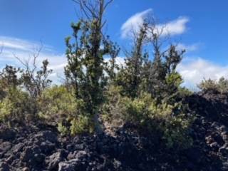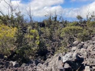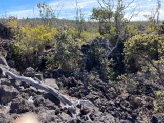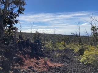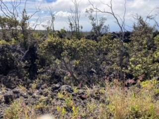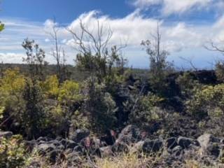 Hawaiian Ocean View Estates - one acre ribbon lot (89 x 489) in upper HOVE near the Manuka Park side of the subdivision. This lot had a rough/steep driveway cut in many years ago and it leads down to a semi-level area. Lots of ohia trees and ohelo berry bushes onsite. Great ocean views, too! Sparsely populated neighborhood for quiet country living. Lava Zone 2, Flood Zone X.