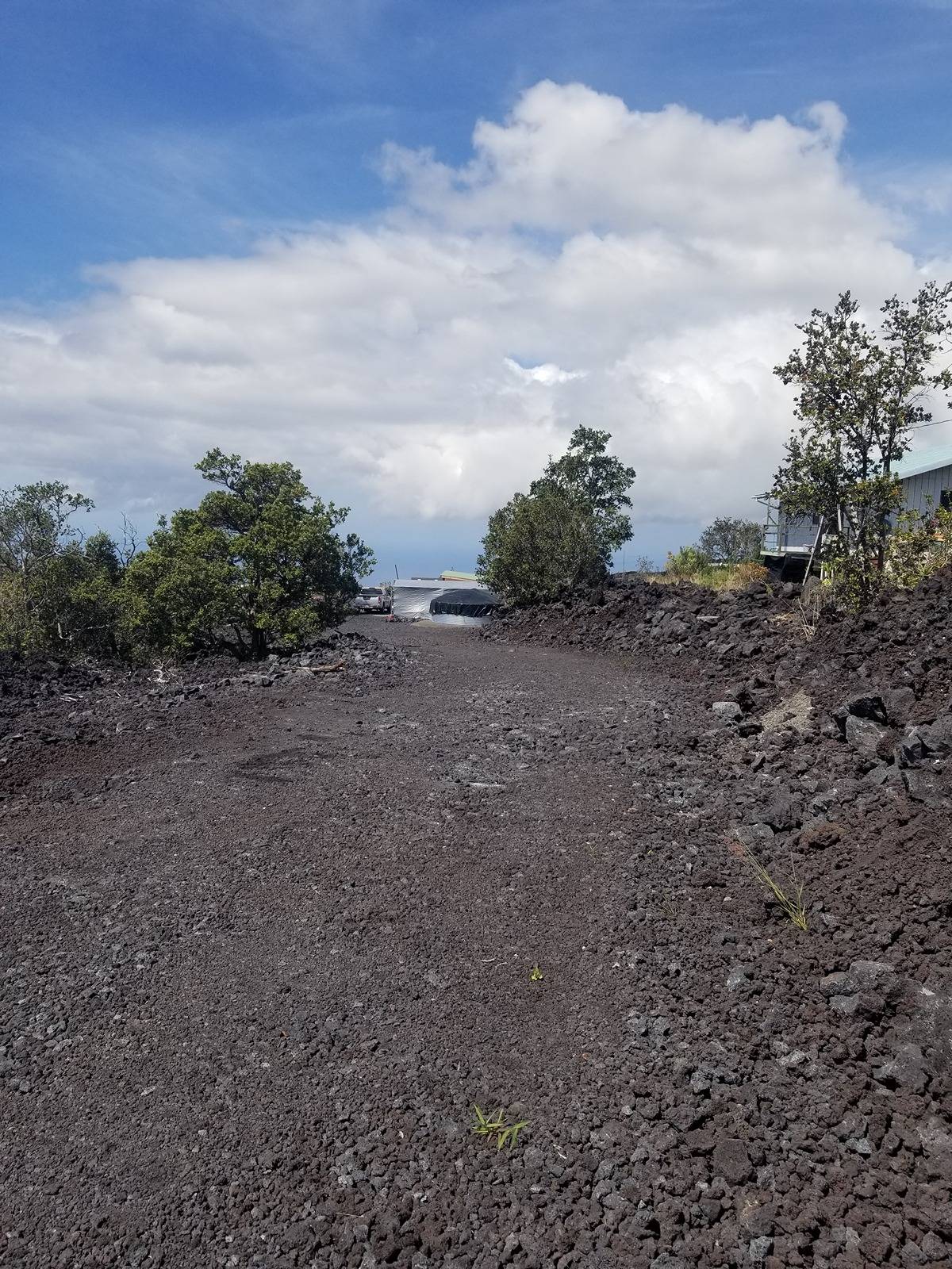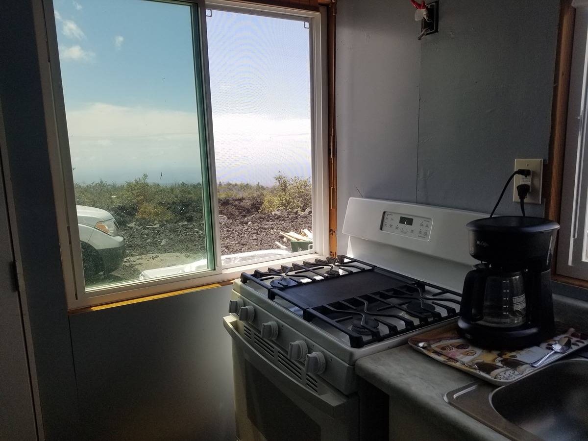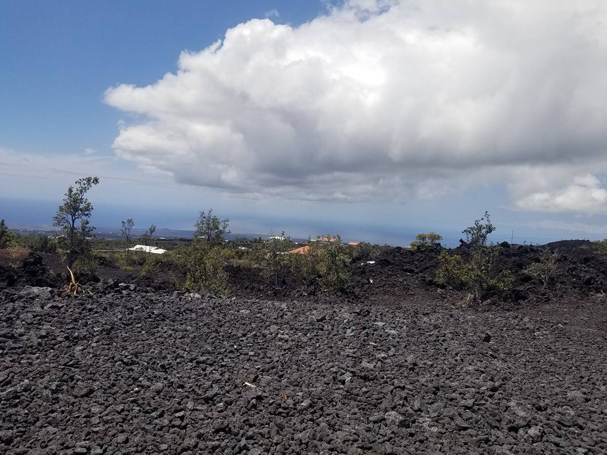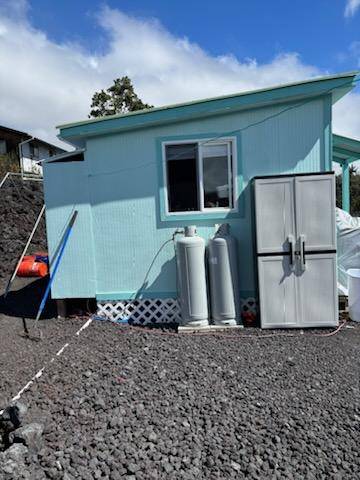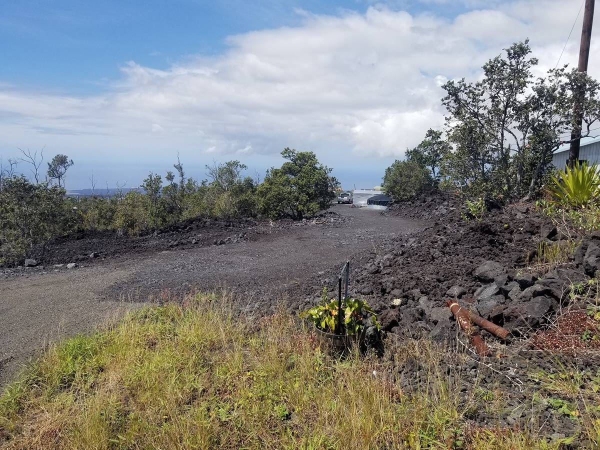 Amazing expansive unobstructed view of the ocean with sunset happy hour every night. Ag building*, walls insulated and covered, 10x20 sq feet, 1 full bathroom with shower, toilet, and sink in the building, 9,000 Watt solar system*, 110/220 volts, 5,000-gallon water tank, 220 volt 1/2 horsepower pump, 30 gal pressure tank, 40 gal propane tank, 110 volt UV Purification system. This setup runs a full-size new refrigerator, freezer, new washing machine, new gas heater for cool nights, coffee maker, gas Stove/Oven with pancake griddle, and all the liveable comforts while building your dream home at the back of the property. Bulldozed with a driveway to the back. In front, there is an area where Old Ohia trees were left in a kapuka. It would be a great place to put a picnic table or for shade. If you plan to build a permitted structure, SSP is available for $1,469.