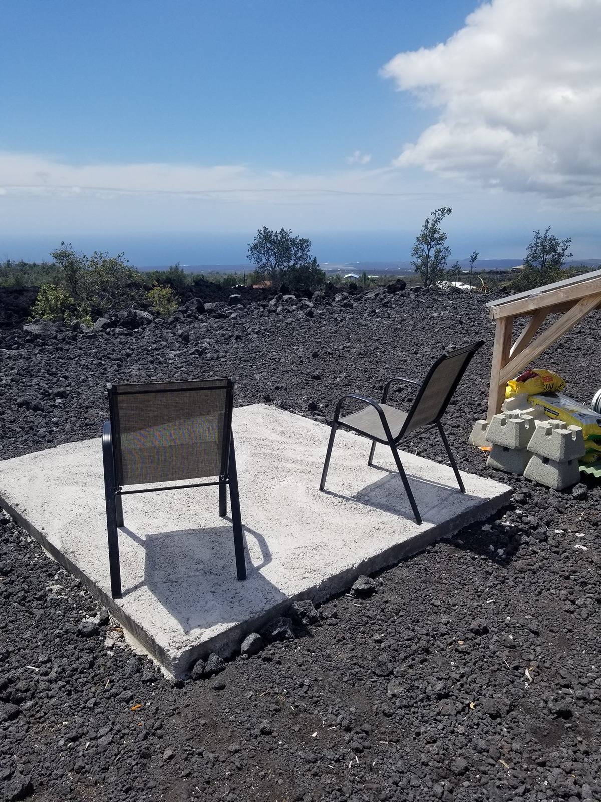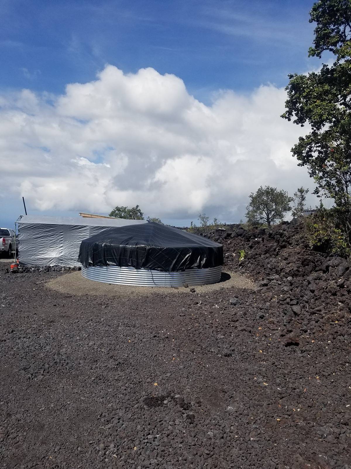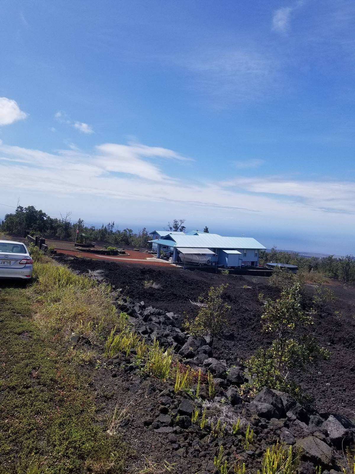 Amazing expansive unobstructed view of the ocean with sunset happy hour every night. Ag building*, walls insulated and covered, 10x20 sq feet, 1 full bathroom with shower, toilet, and sink in the building, 9,000 Watt solar system*, 110/220 volts, 5,000-gallon water tank, 220 volt 1/2 horsepower pump, 30 gal pressure tank, 40 gal propane tank, 110 volt UV Purification system. This setup runs a full-size new refrigerator, freezer, new washing machine, new gas heater for cool nights, coffee maker, gas Stove/Oven with pancake griddle, and all the liveable comforts while building your dream home at the back of the property. Bulldozed with a driveway to the back. In front, there is an area where Old Ohia trees were left in a kapuka. It would be a great place to put a picnic table or for shade. If you plan to build a permitted structure, SSP is available for $1,469.