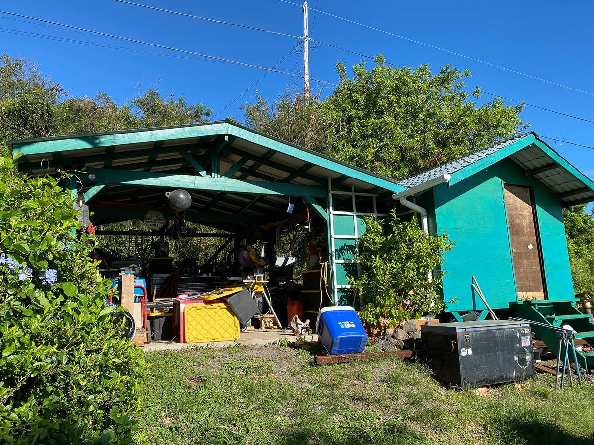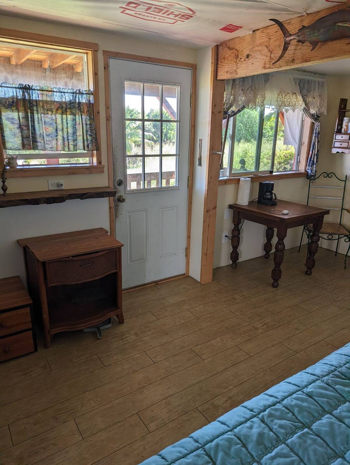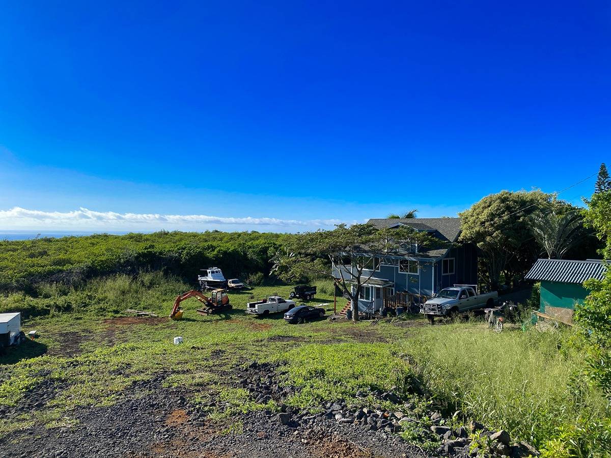 Unobstructed views of the Pacific Ocean from this lovely 2 bedroom 1 bath 672 sq ft home in the rural subdivision of Mark Twain. This property boasts stunning views, ONE ACRE of land (two seperate 1/2 lots) carport with shed, under-home workshop, an attached guest studio with full bath. Home is fully permitted, county water (and a catchment tank) and electric. New vinyl flooring in main home. New washing machine. New external paint. Concrete driveway with gate. Second 1/2 acre parcel has been dozed. Property has mature and producing Mango, Cacao and Avocado. Palaoa Road is graded (not paved). Come turn this home into your dream residence. Comes with TMK 3-9-4-10-28 and 29