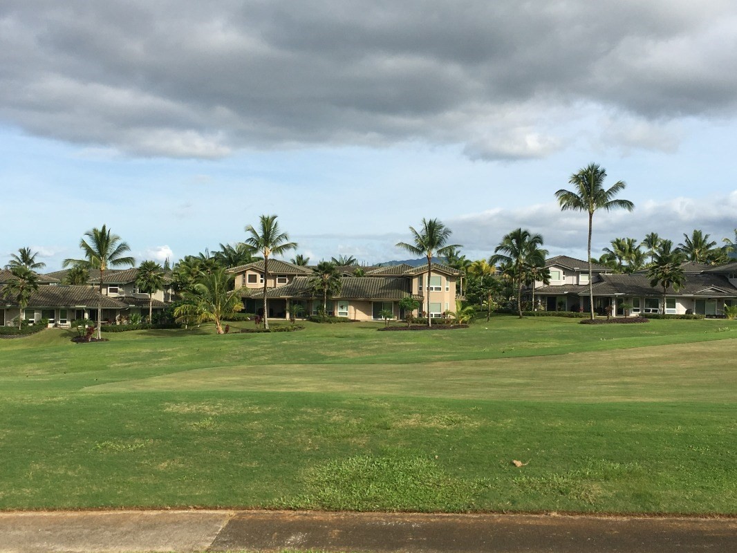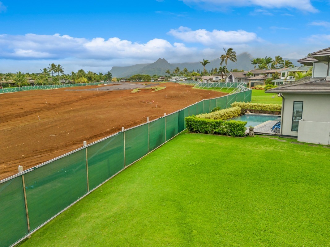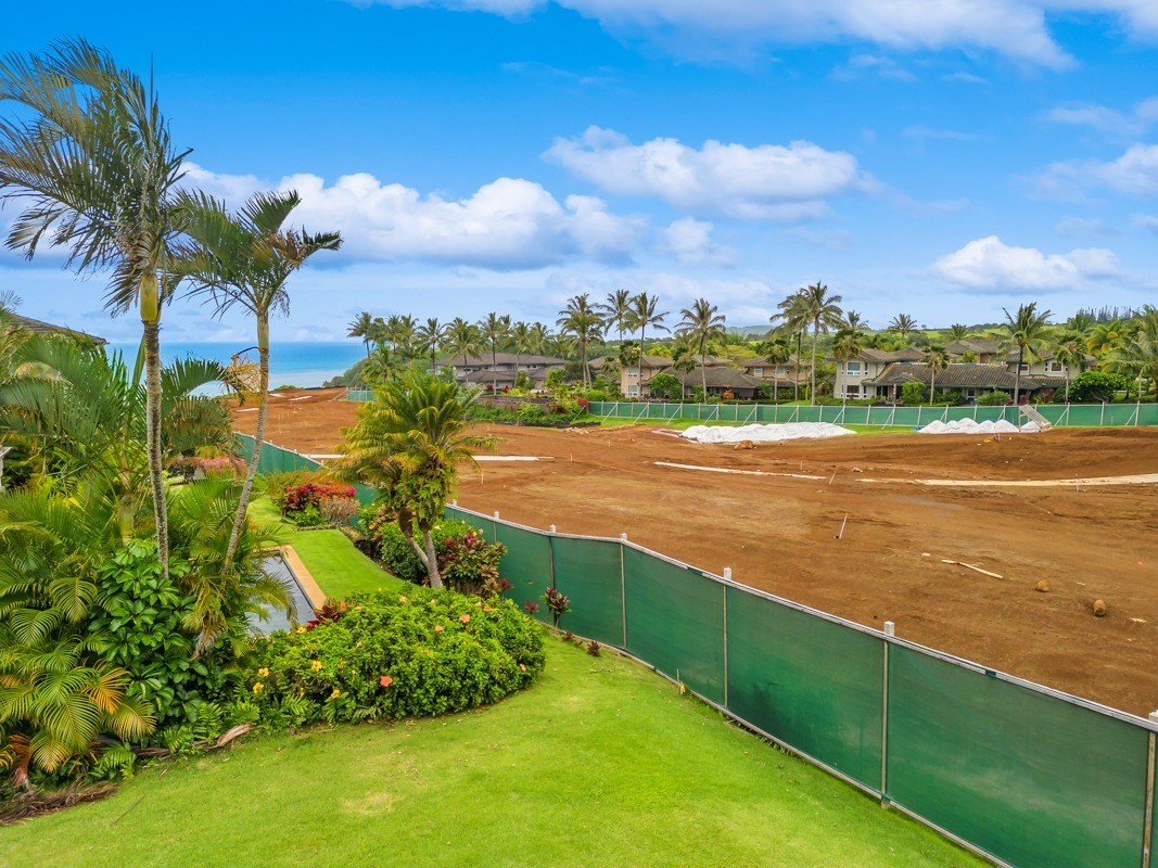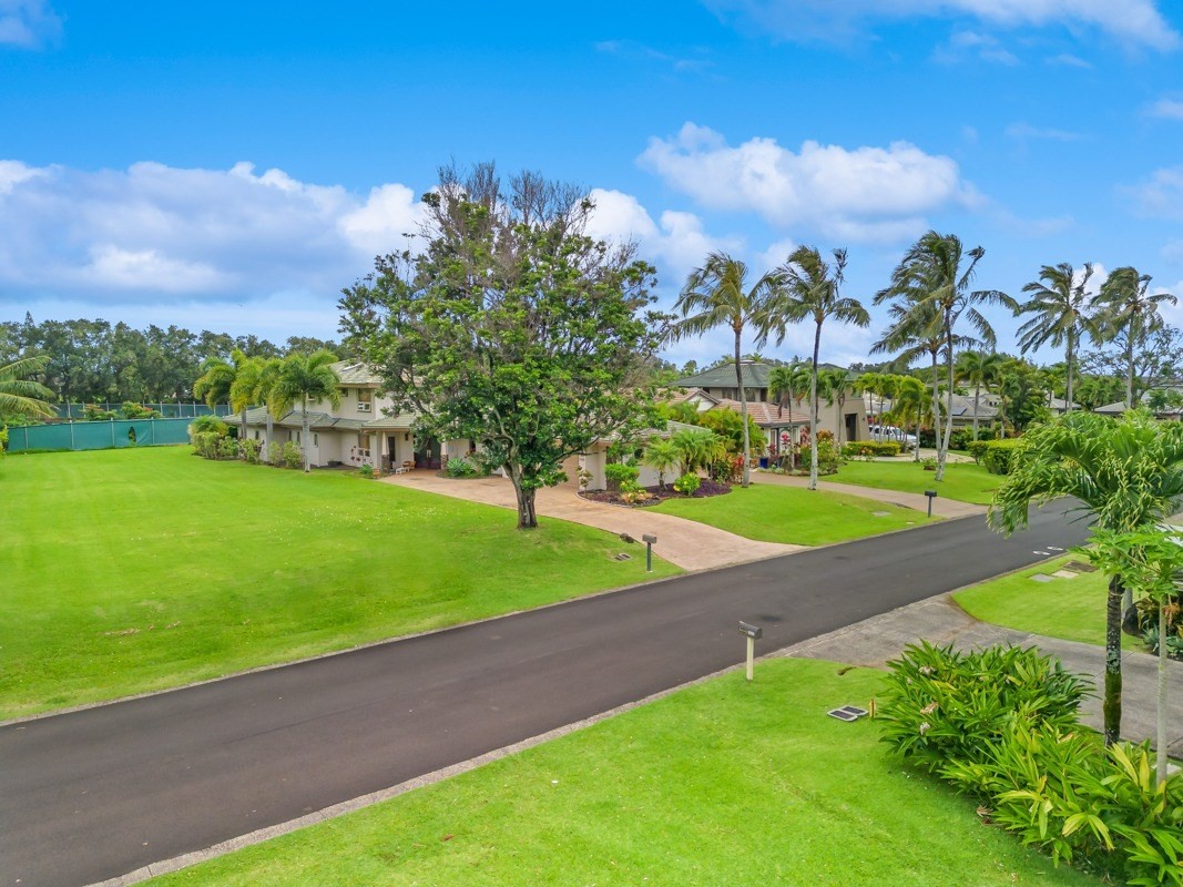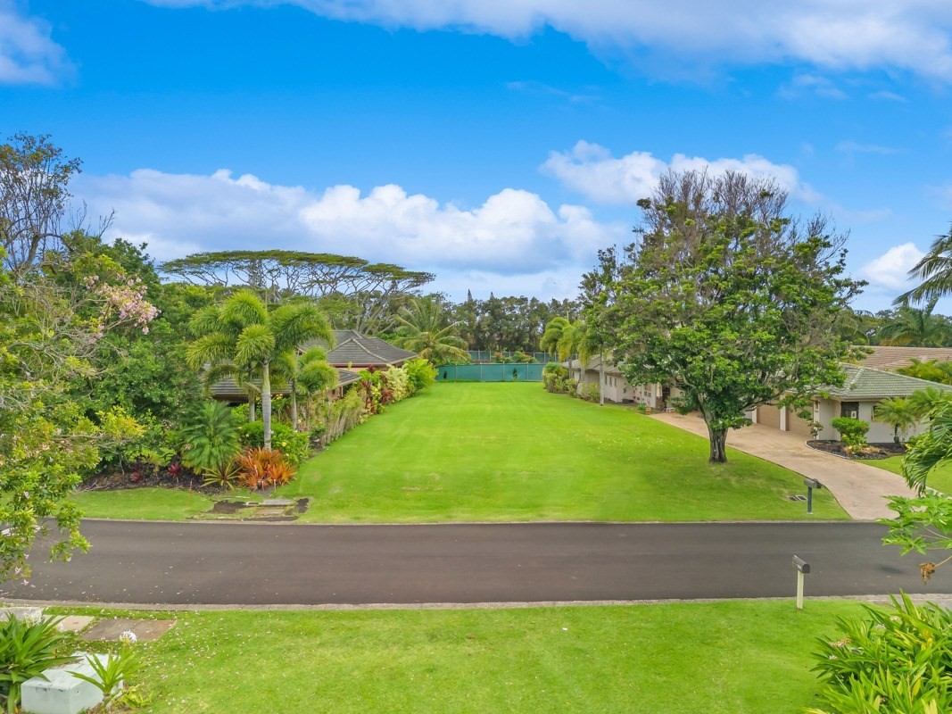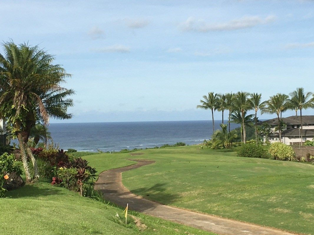 The lot is on the more preferred side of Aloalii Dr. taking advantage of the northeast trade winds and the afternoon shade. View down the fairway to the white waters off world famous Anini beach.