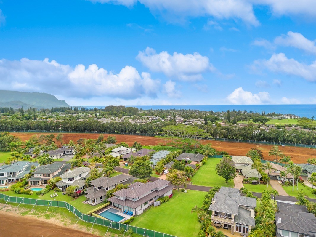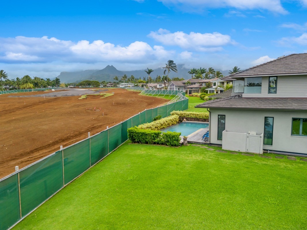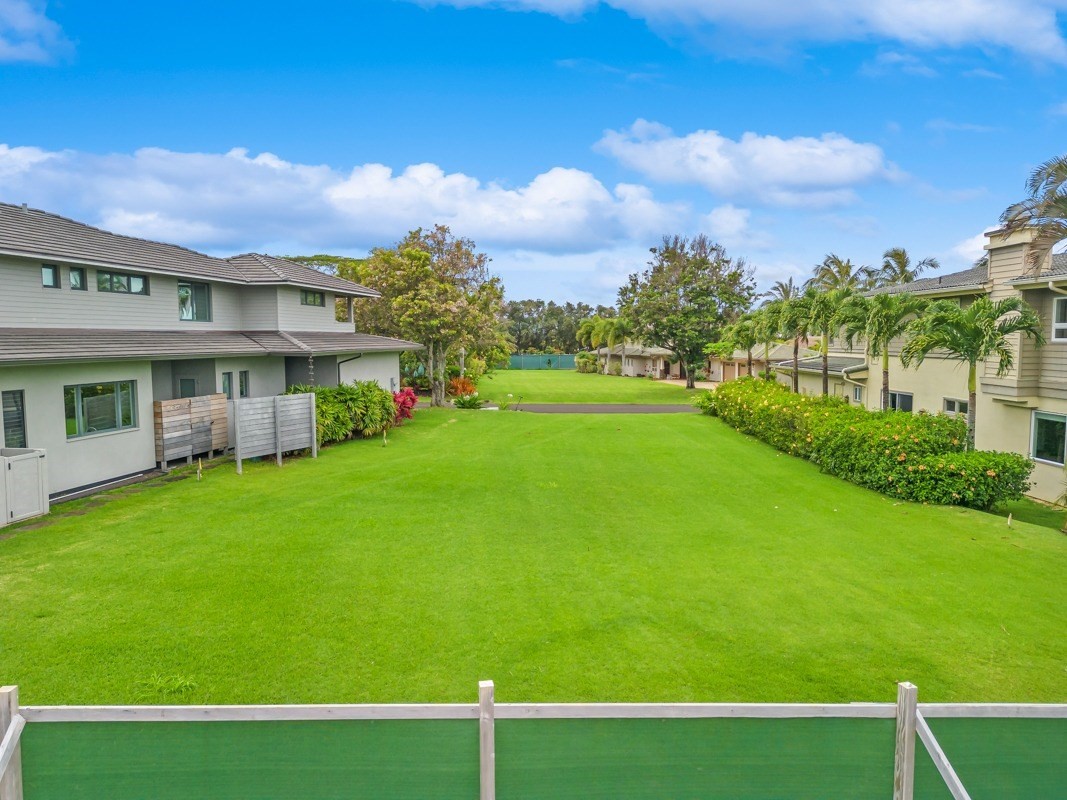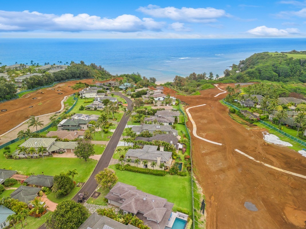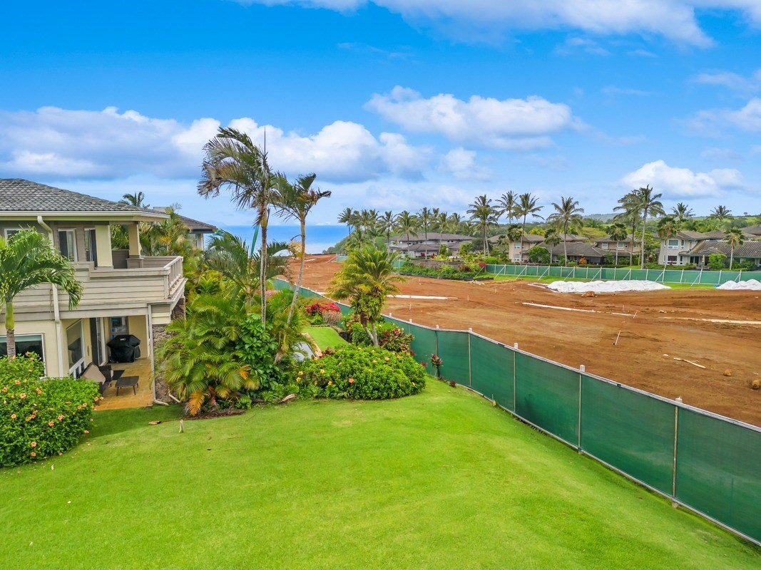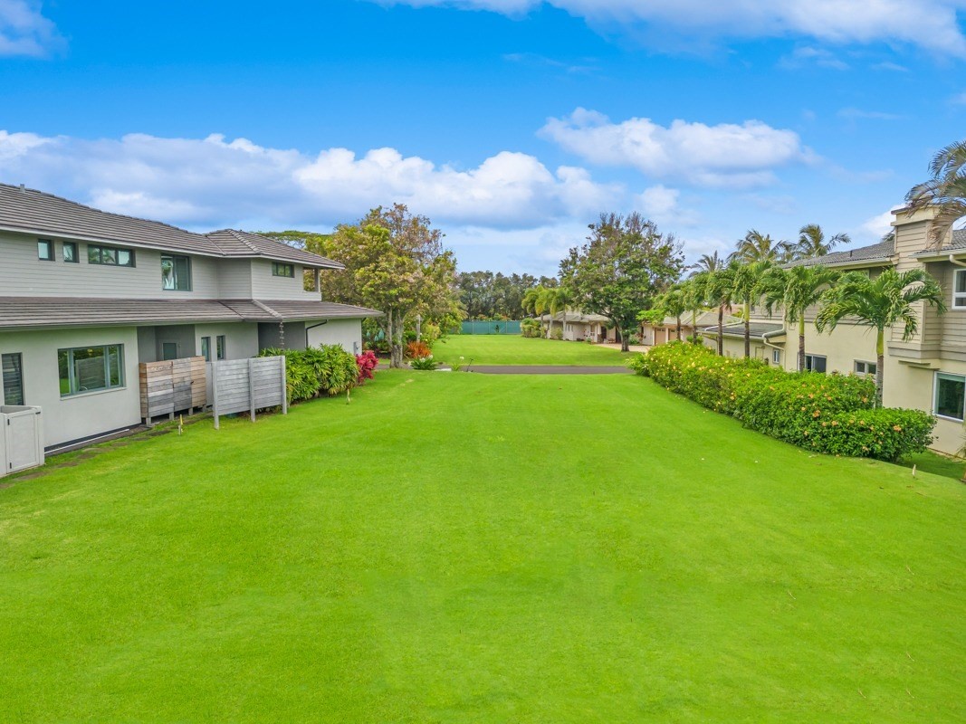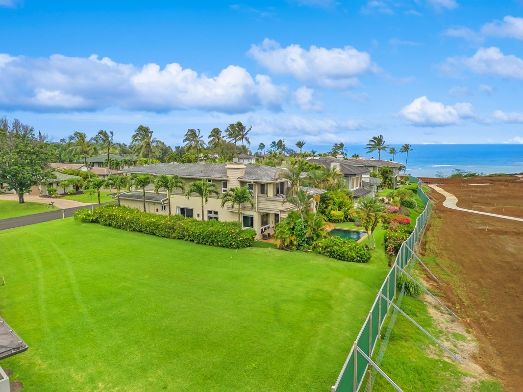 The lot is on the more preferred side of Aloalii Dr. taking advantage of the northeast trade winds and the afternoon shade. View down the fairway to the white waters off world famous Anini beach.