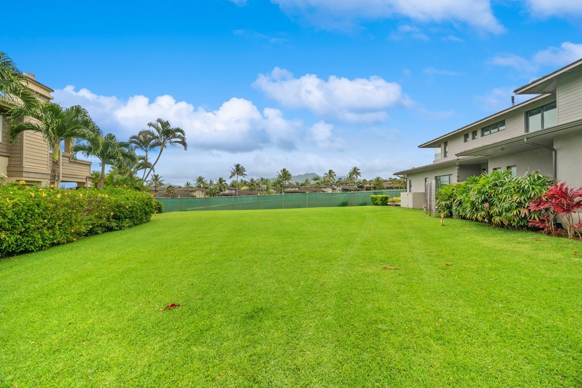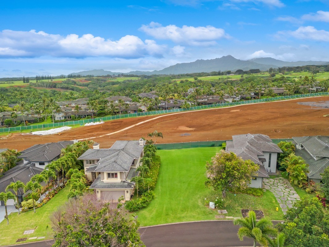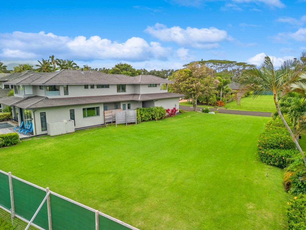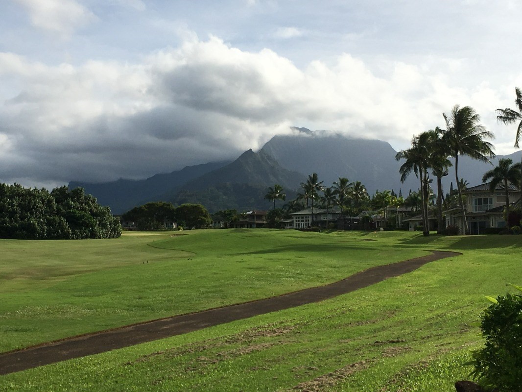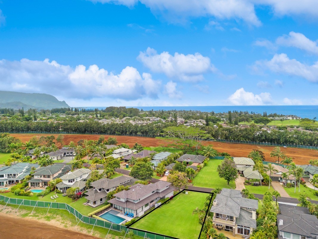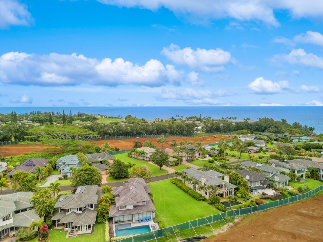 The lot is on the more preferred side of Aloalii Dr. taking advantage of the northeast trade winds and the afternoon shade. View down the fairway to the white waters off world famous Anini beach.