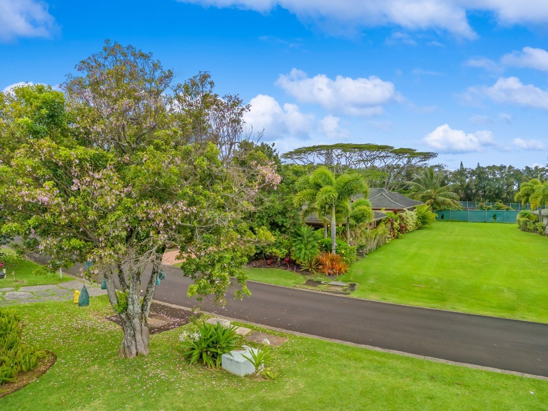 The privacy, quietude, and ambiance in this gated cul-de-sac subdivision in Princeville will assure your sense of arrival at a special place. This lot is level and ready to build. The rear of the lot is ~74 feet wide, making it one of the largest rear lot dimensions on Aloalii Dr.