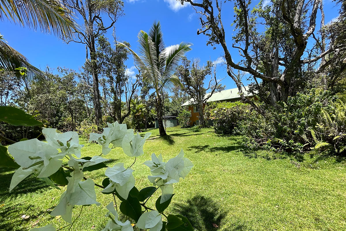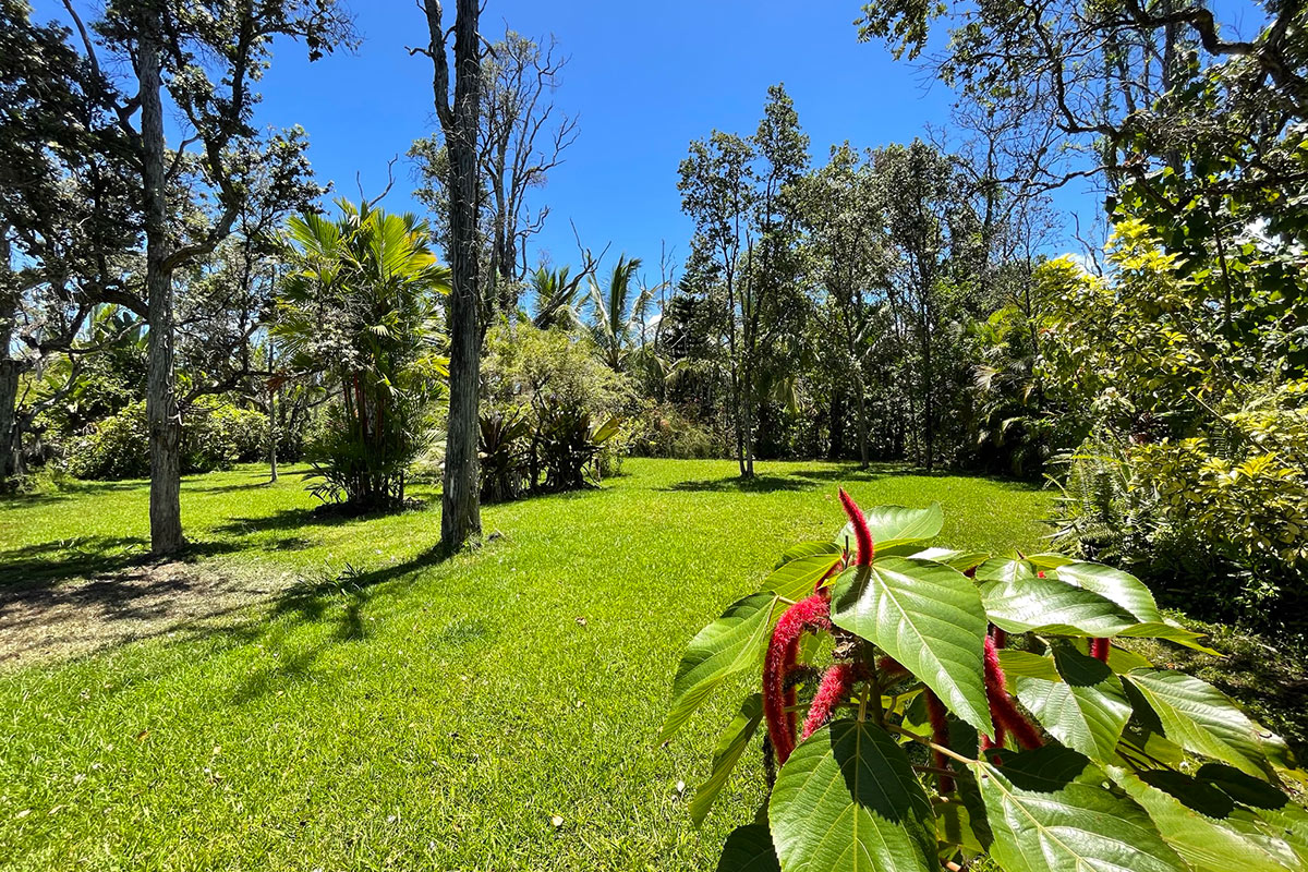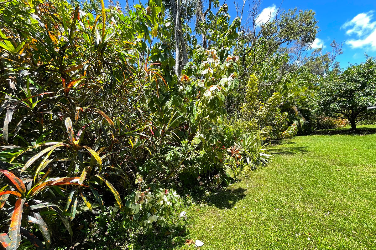 This lot, tucked back into a quiet corner of Seaview, was developed along with the adjoining house property creating an amazing park-like tropical setting. Here you will find a variety of flowering and fragrant plants, lush green lawn, fruit trees, native Ohia trees, and more.
